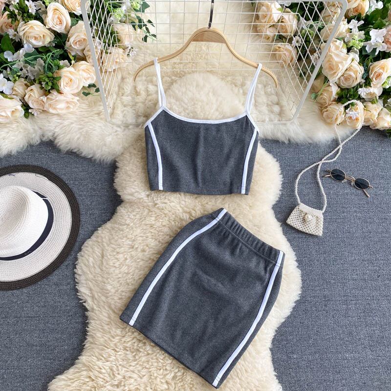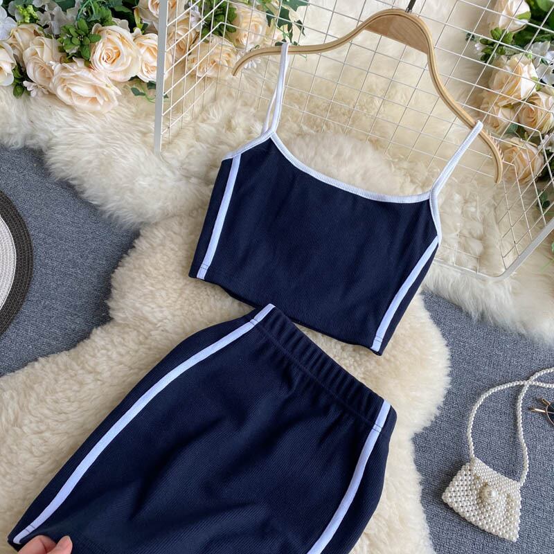 European and American style sports suit women's summer dress 2020 new color matching camisole short high waist skirt two-piece set ハイウェスト ショート サマー 夏物 スカート ヨーロピアン lyxaj21487468419
