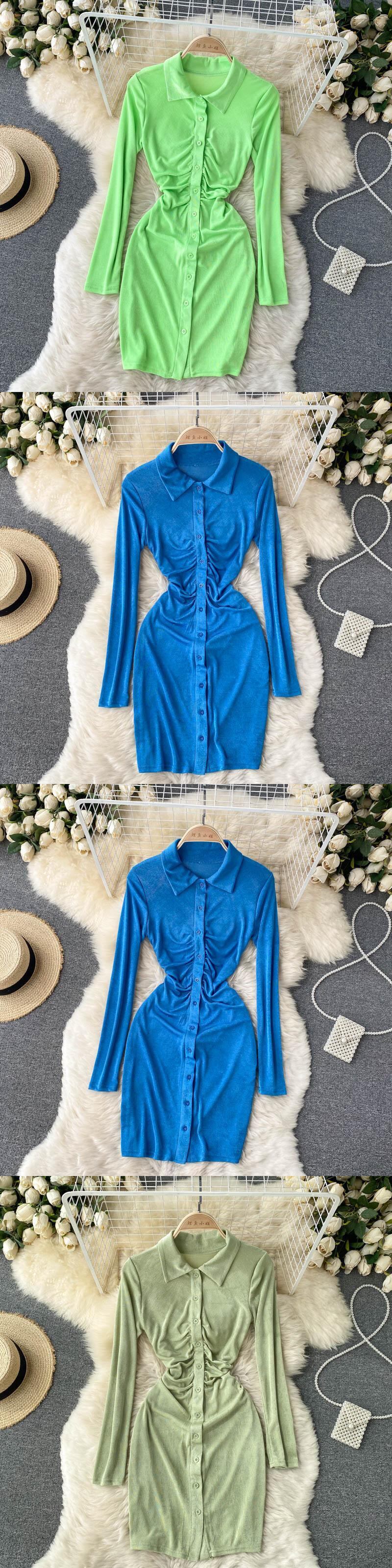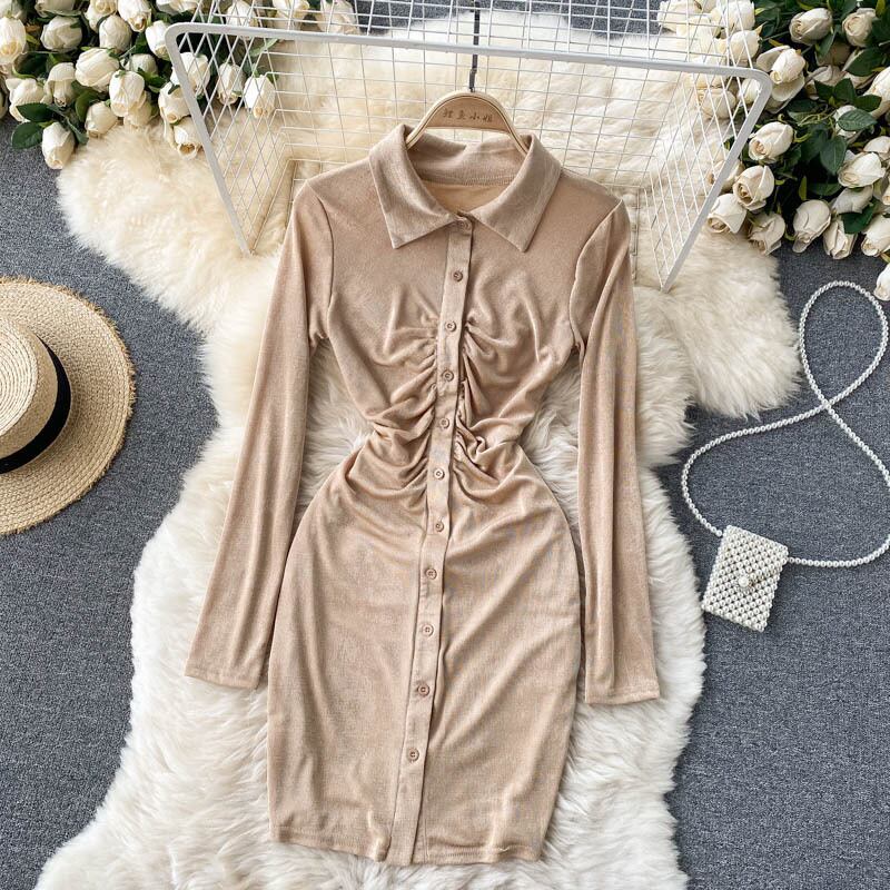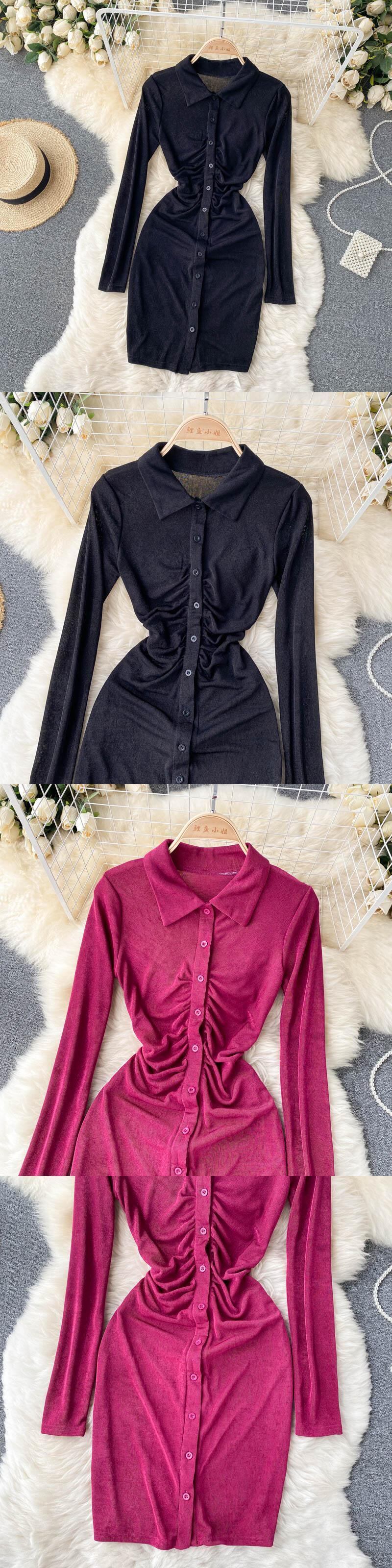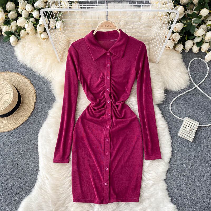 European and American ins net red waist and thin single-breasted shirt skirt pleated slim long-sleeved hip dress bottoming tide ロング レッド プリーツ スカート スリム ヨーロピアン lyxaj39692824040
