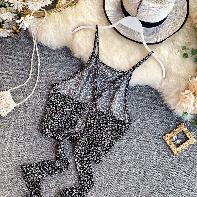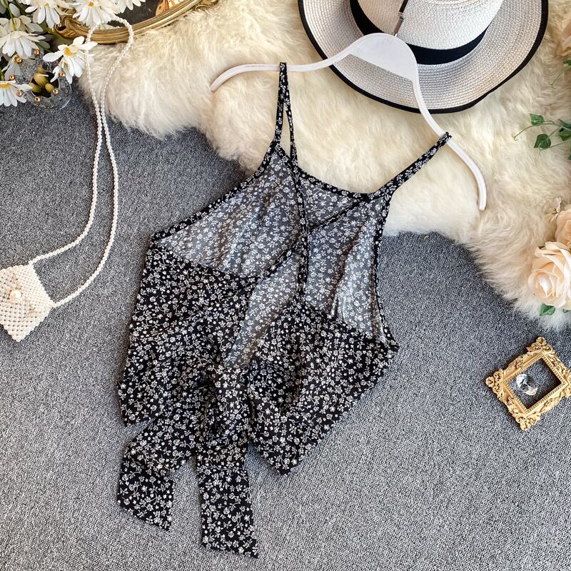 European and American ins sexy short navel tops women's scheming backless tie waist waist show thin broken flower suspenders small shirt tide ショート フラワーデザイン ヨーロピアン lyxaj5556394827