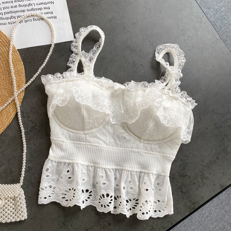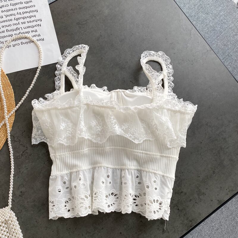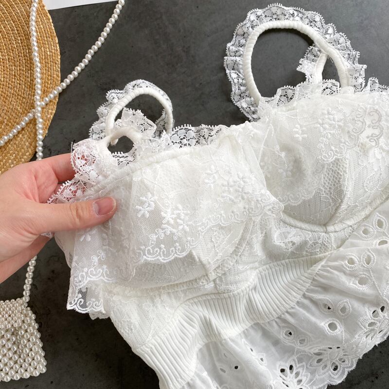 Girly feeling gentle lace-edged camisole fungus decorative hollow three-dimensional hook flower sexy beautiful back underwear レース フラワーデザイン lyxaj76664893348