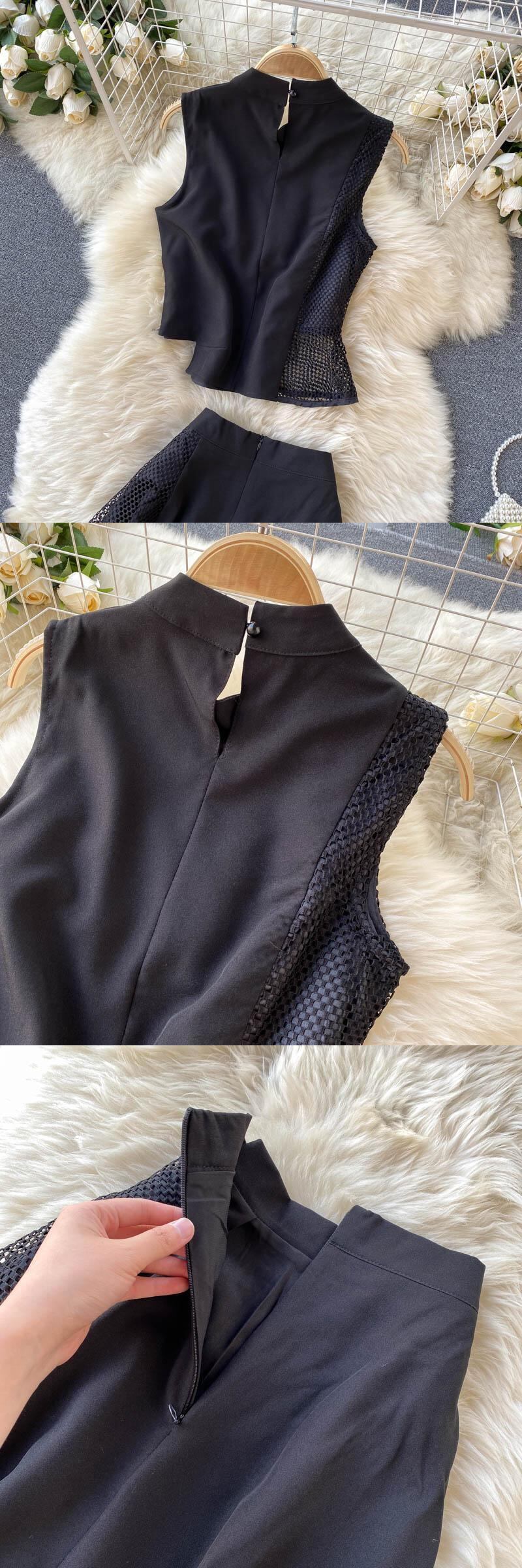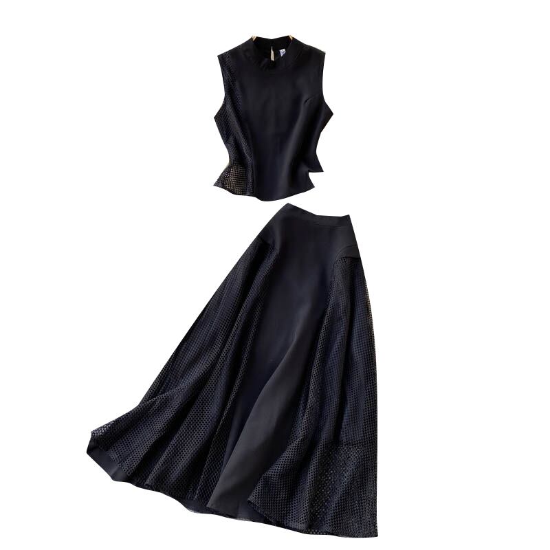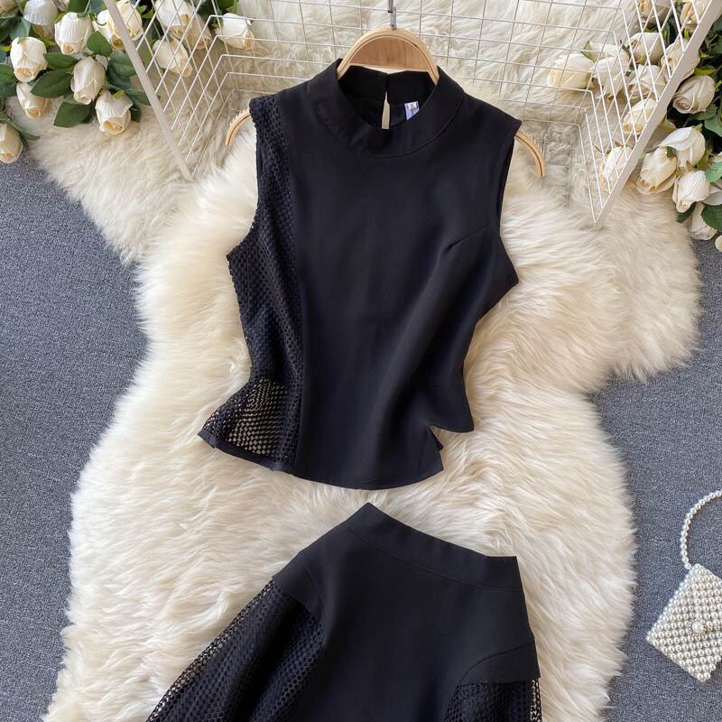 Dark women's clothing 2021 new trendy design sense hollow stitching slim top women's high waist skirt suit women ハイウェスト スカート スリム ステッチ lyxaj65876773539