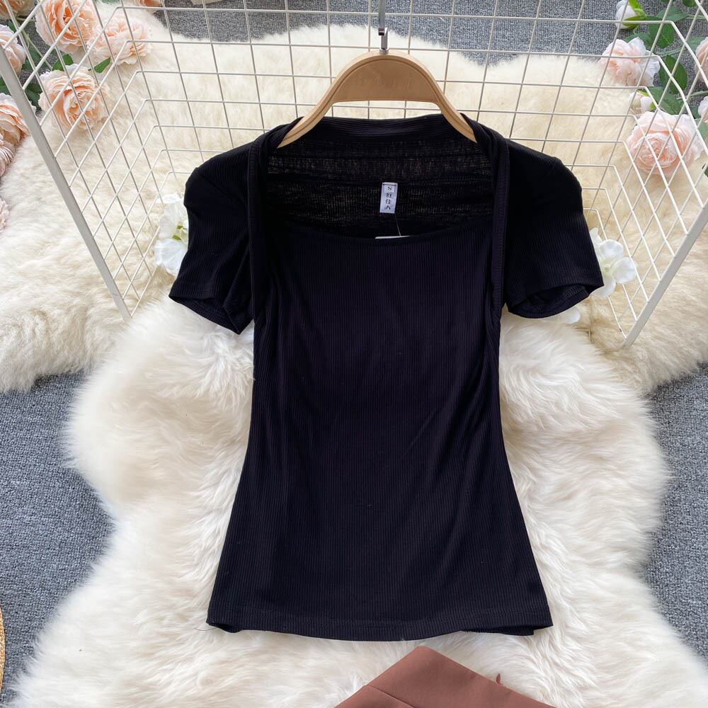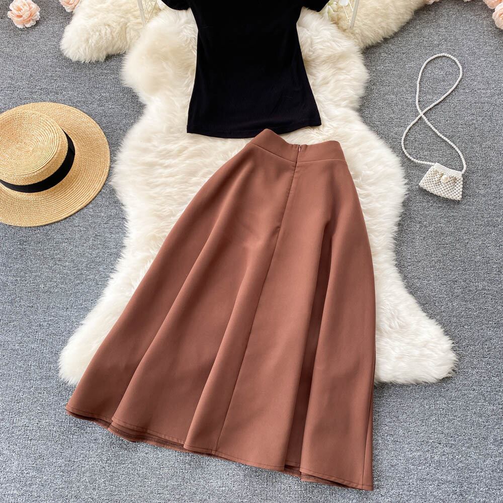 version of the retro Hong Kong style new suit women's short-sleeved knitted tight-fitting bottoming shirt high-waisted half-length pleated skirt two-piece set レトロ プリーツ スカート lyxaj93085041415