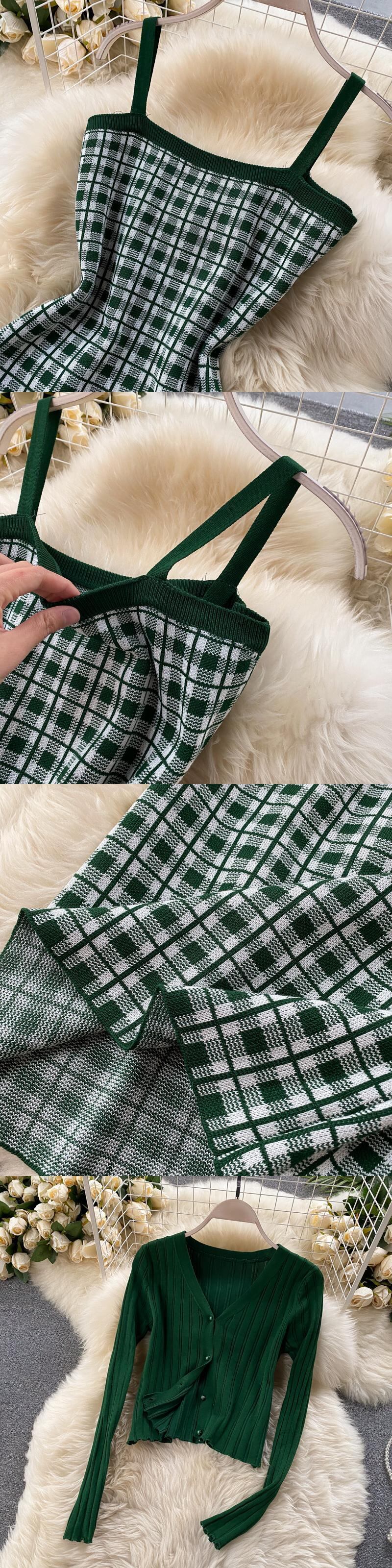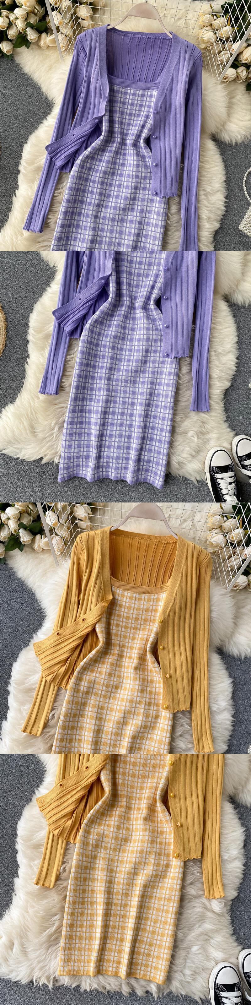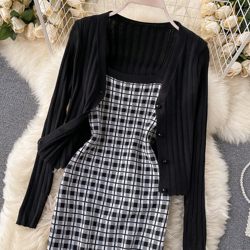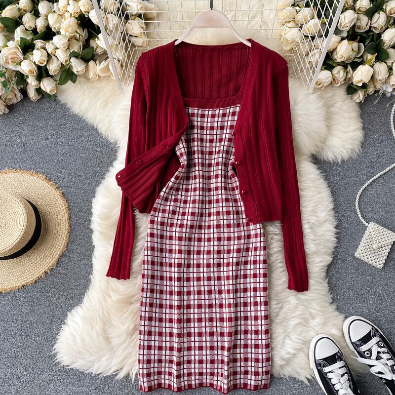 2020 autumn suit ladies knitted cardigan coat all-match short suspender dress age-reducing two-piece set ショート カーディガン オータム 秋物 lyxaj95981091526