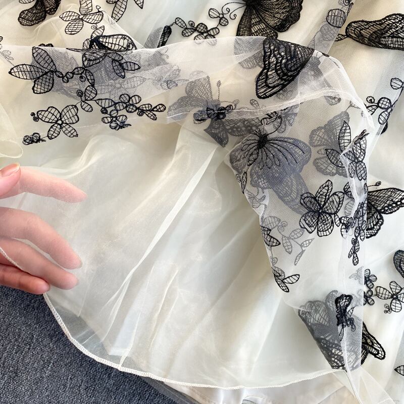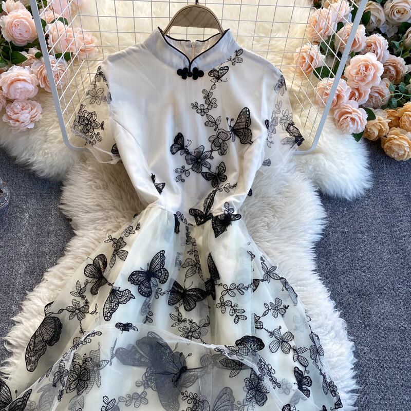 2021 new Republic of China style retro improved cheongsam collar heavy industry embroidery butterfly short-sleeved waist and swing dress レトロ 刺繍 lyxaj53943084370