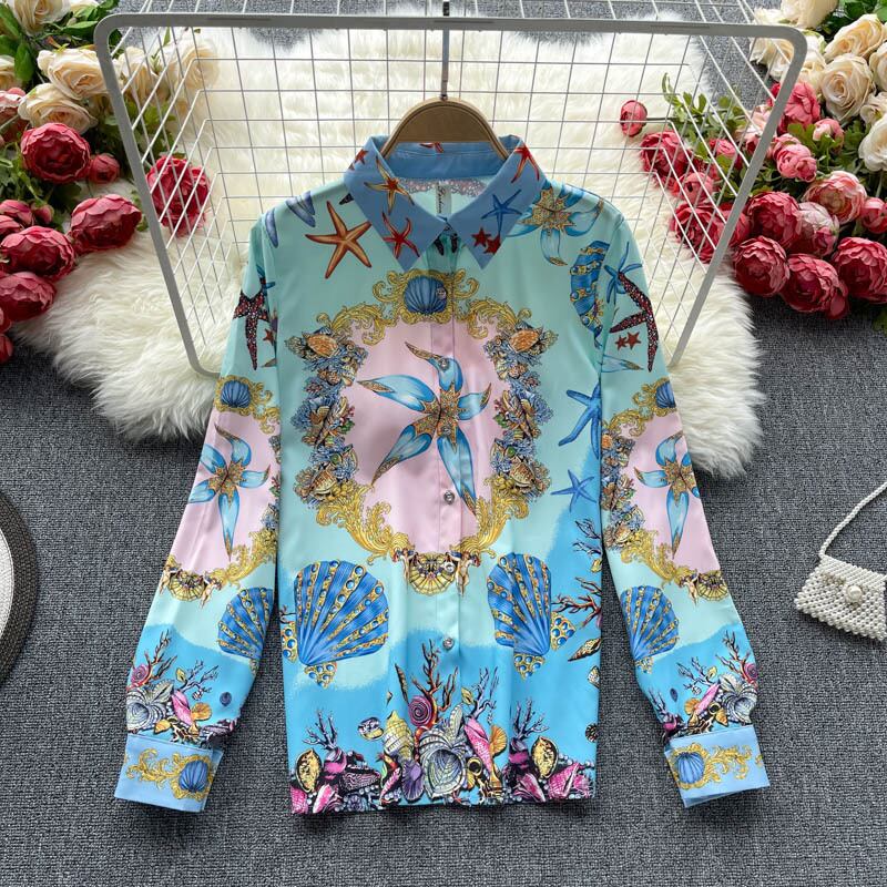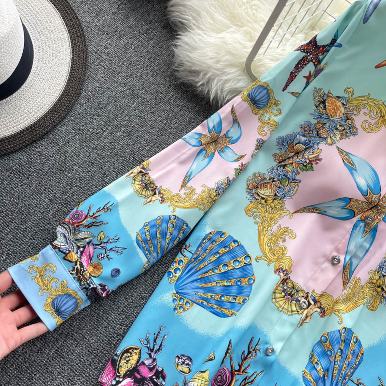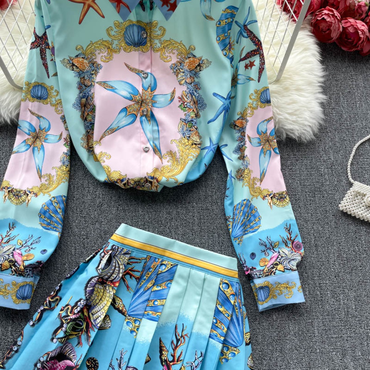 Spring long-sleeved shirt women's design sense niche printing fashionable all-match pleated skirt two-piece suit trendy ロング プリーツ スプリング 春物 スカート lyxaj9363489232