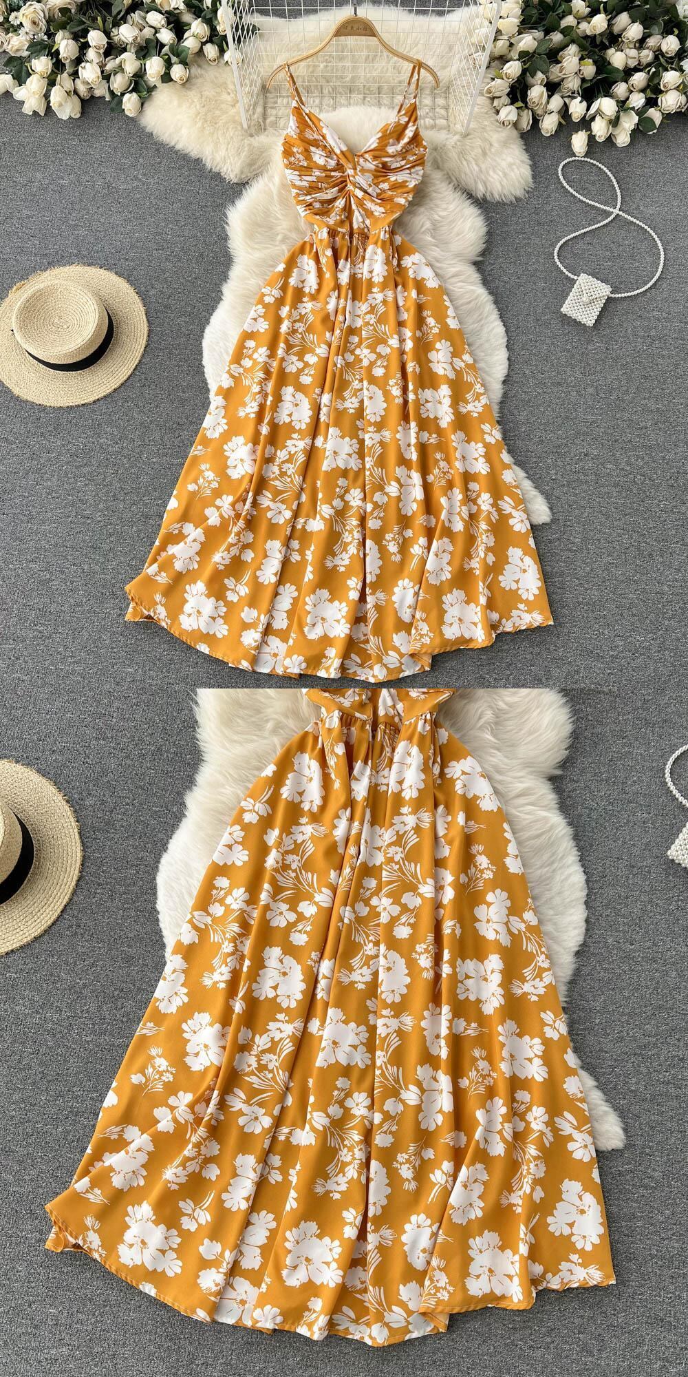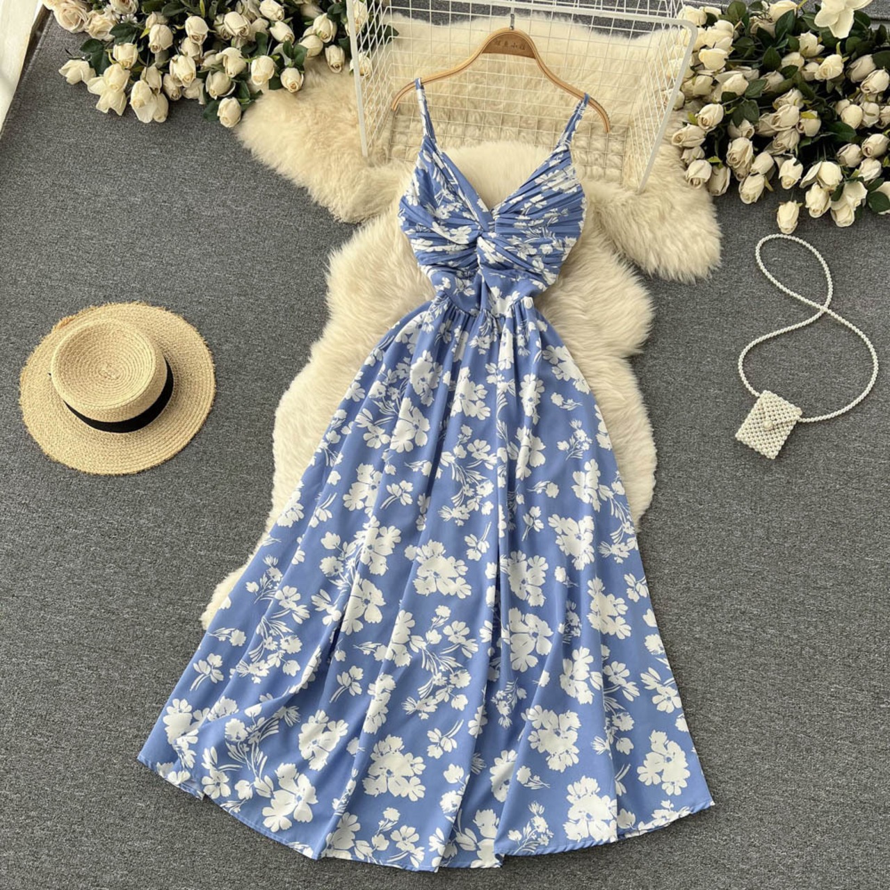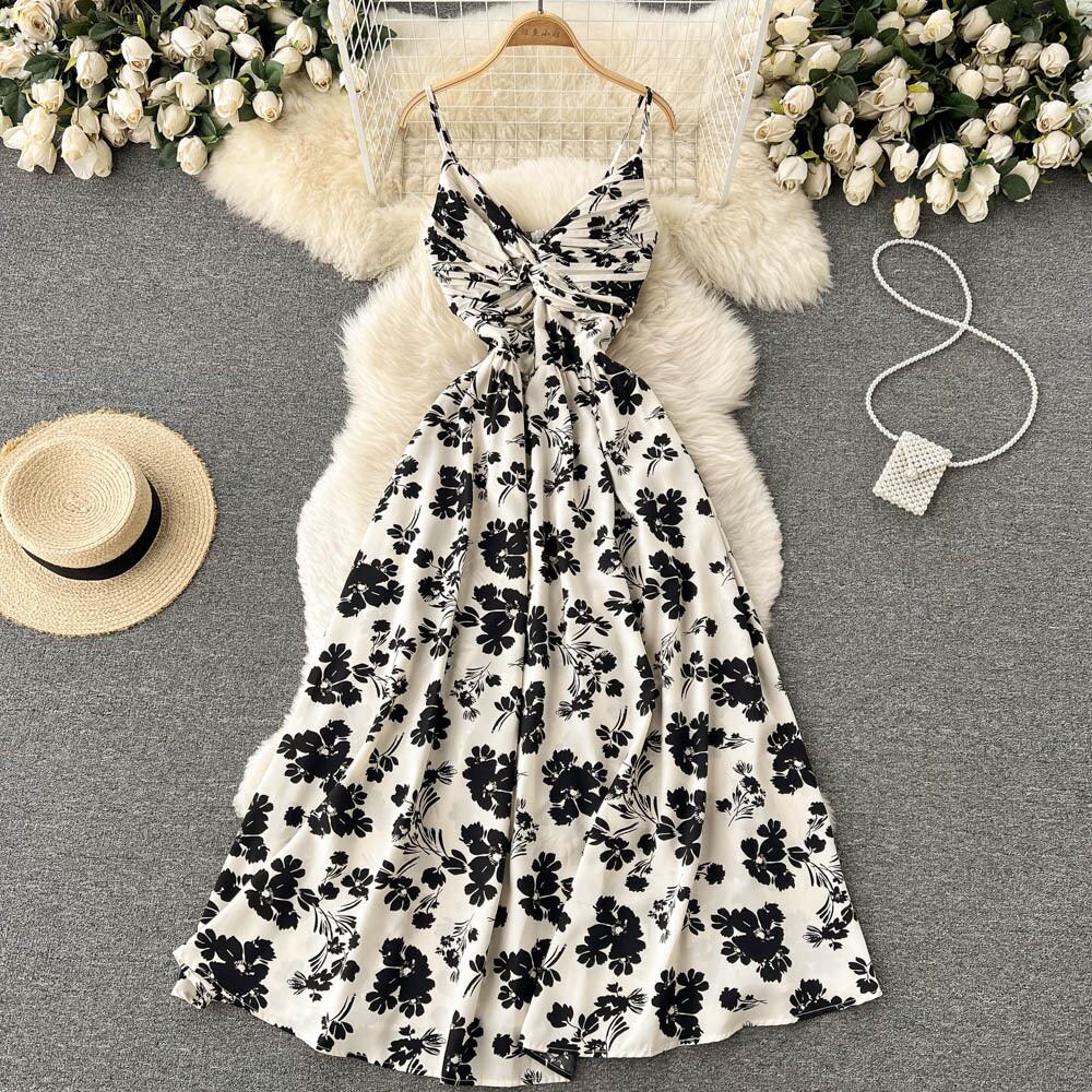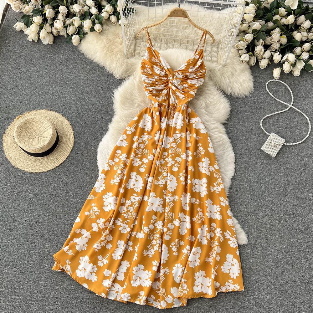 2022 new design sense pleated suspender skirt floral dress female summer western style fashion holiday style skirt trend プリーツ サマー 夏物 花柄 スカート lyxaj9740329148