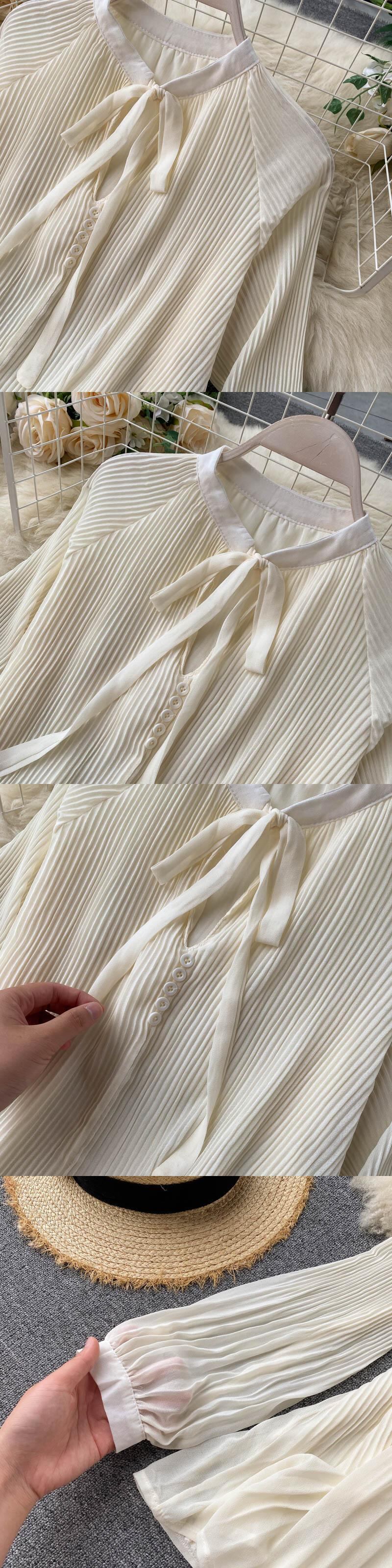 Autumn 2020 new women's shirt chic gentle wind tie bow collar pleated chiffon women's top trend シフォン リボン プリーツ オータム 秋物 lyxaj74864192214