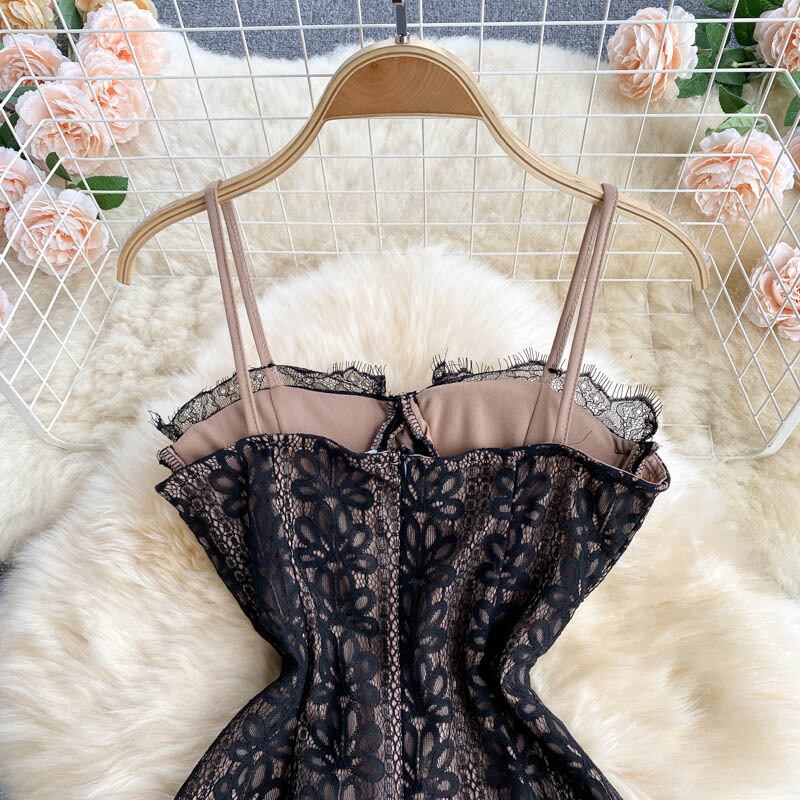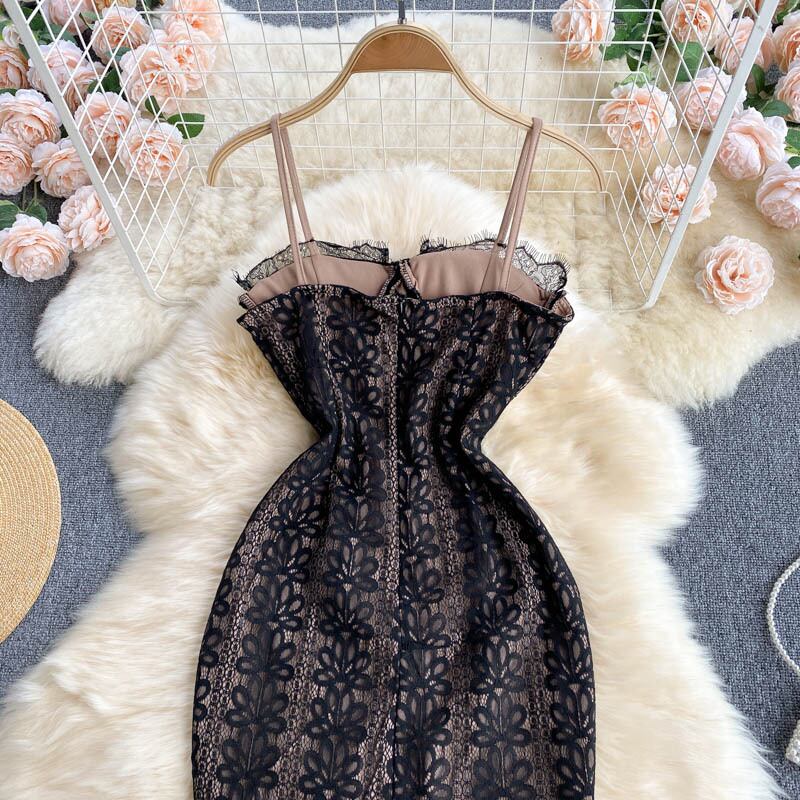 Celebrity style skirt high-end women's sexy eyelashes lace tube top slim short suspender dress women's summer dress ショート レース サマー 夏物 スカート スリム lyxaj5221173498