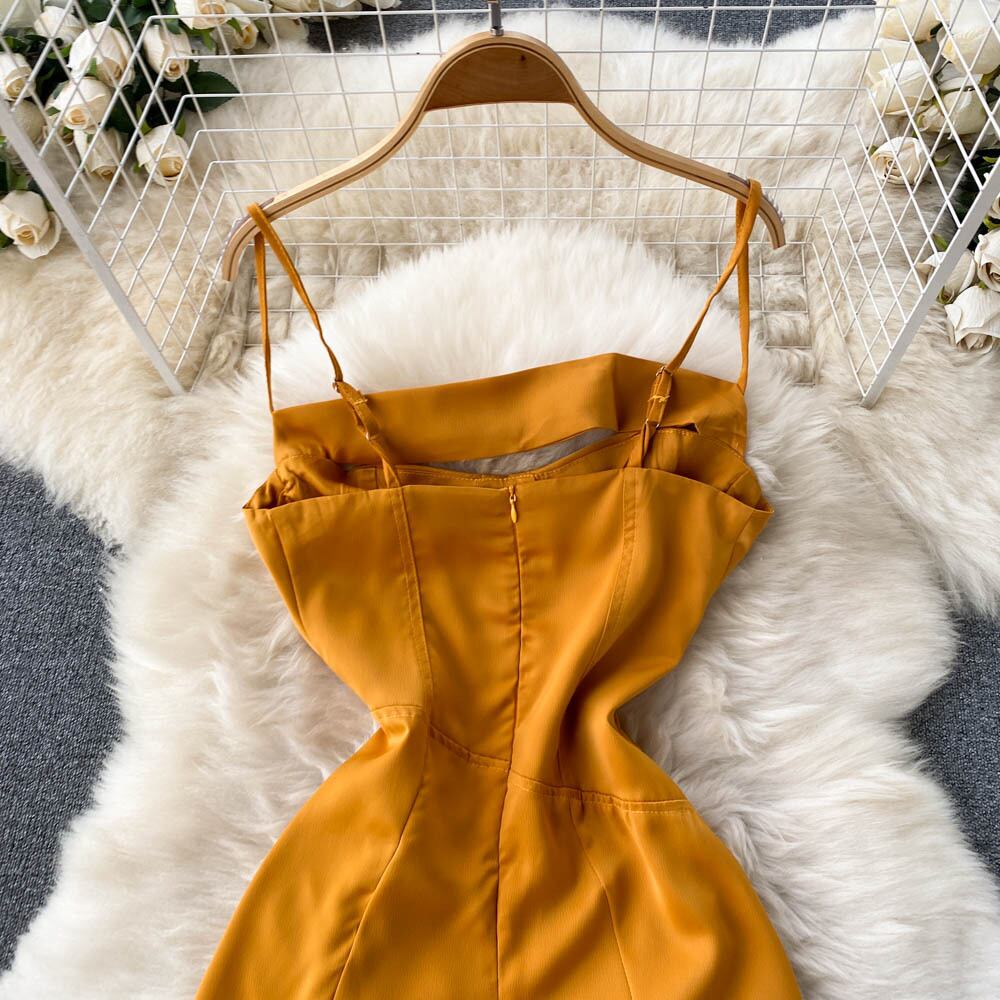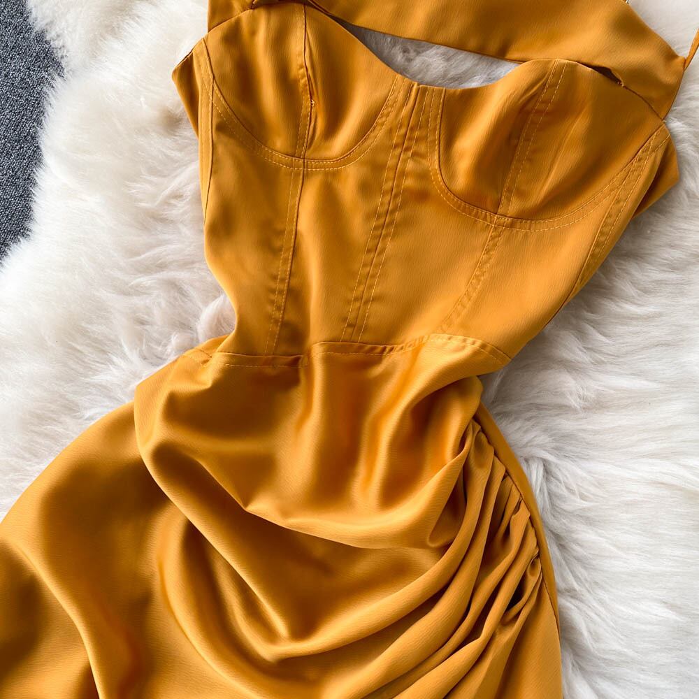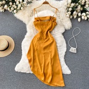 European and American design sense waist tube top open back suspender skirt long skirt solid color temperament thin irregular dress female trend ロング スカート ソリッドカラー ヨーロピアン lyxaj1551456704