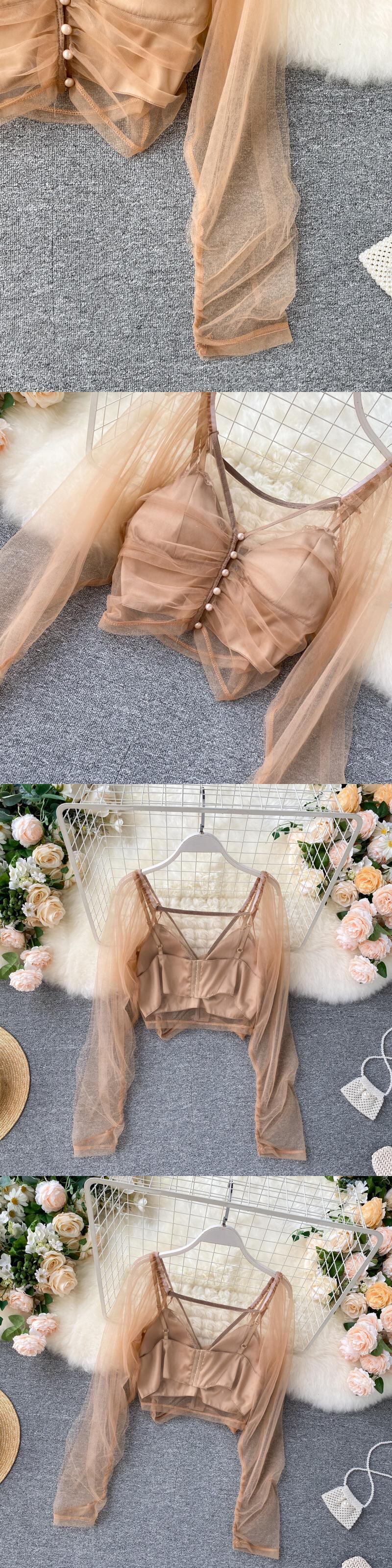 Salty and sweet suits 2020 new women's camisole with two see-through mesh long-sleeved tops ロング 大人ガーリー スウィート キュート カジュアル メッシュ lyxaj64232807943