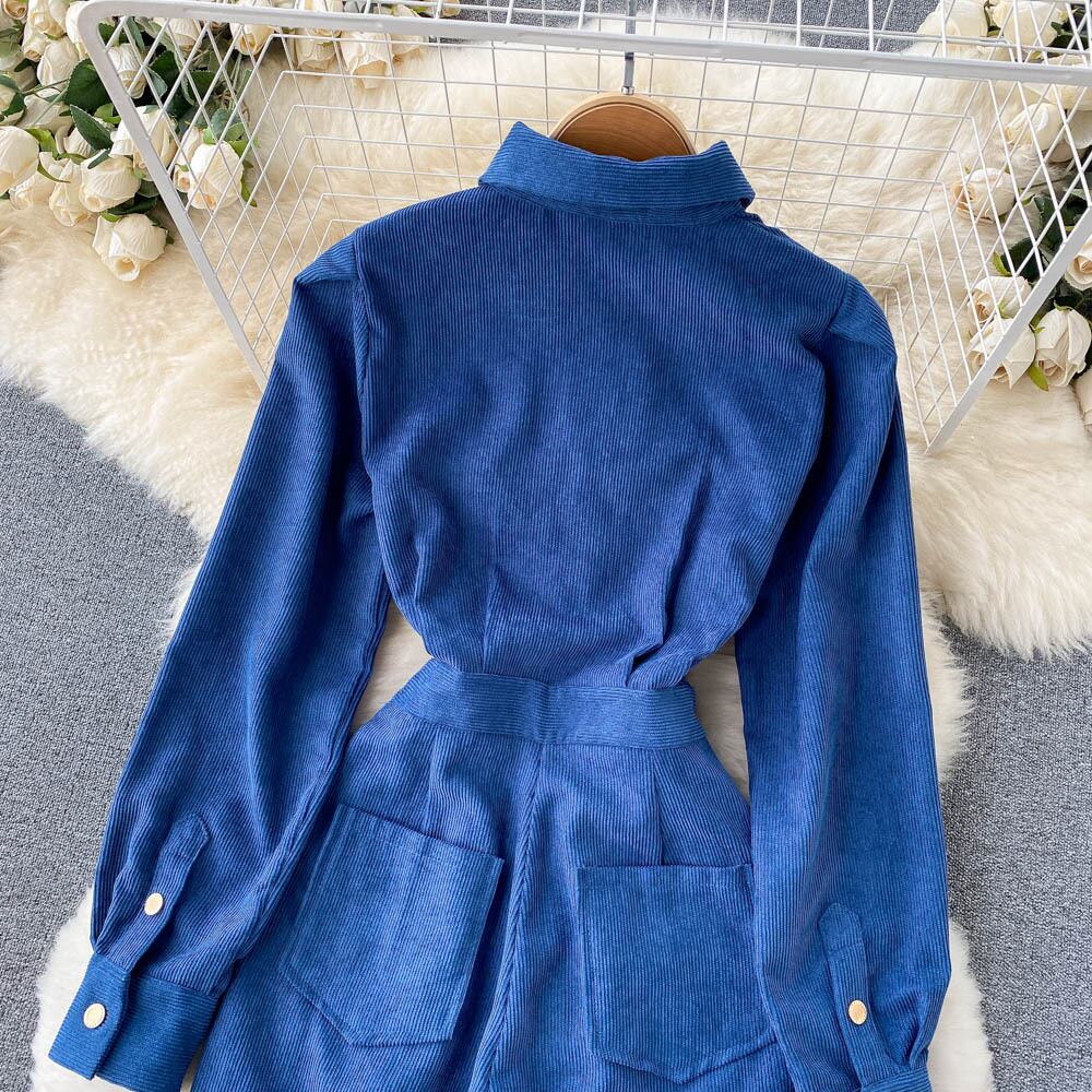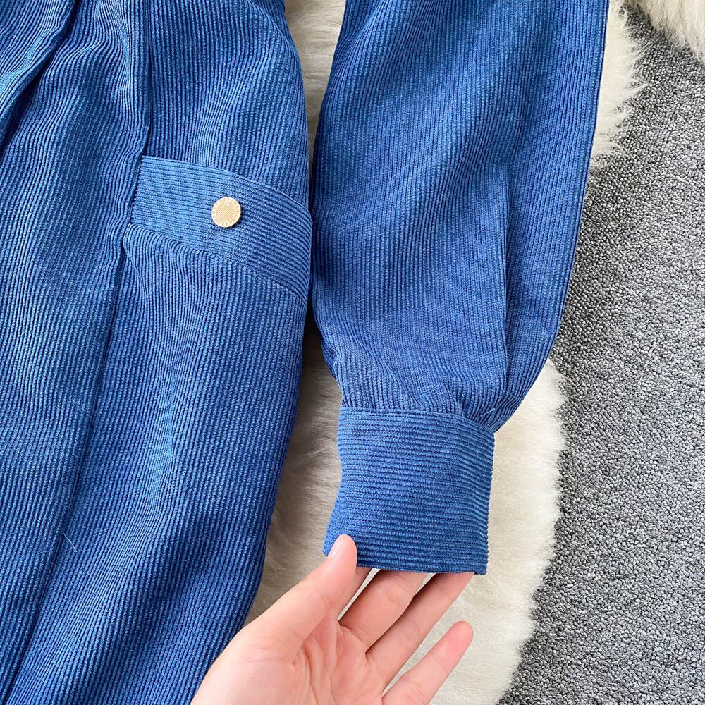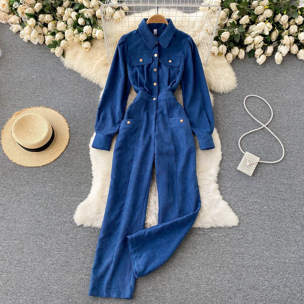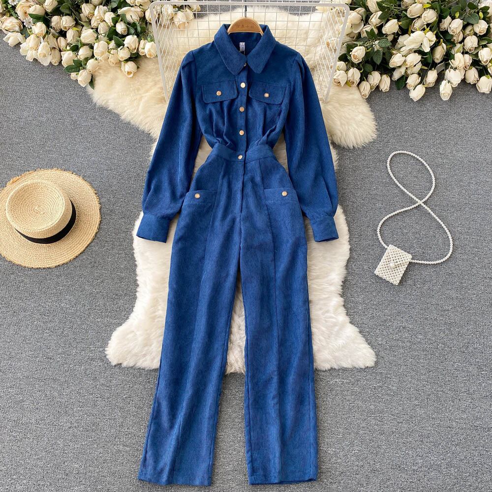 Autumn 2021 Women's Retro Corduroy Workwear Jumpsuit Temperament Breasted Slim Fit Wide Leg Pants レトロ オータム 秋物 スリム ワイドレッグ ワイドパンツ lyxaj49204741786