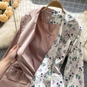 European and American ins niche design sense floral contrast color stitching long-sleeved suit jacket fashionable temperament high-end top ロング 花柄 ヨーロピアン ステッチ lyxaj97170238938