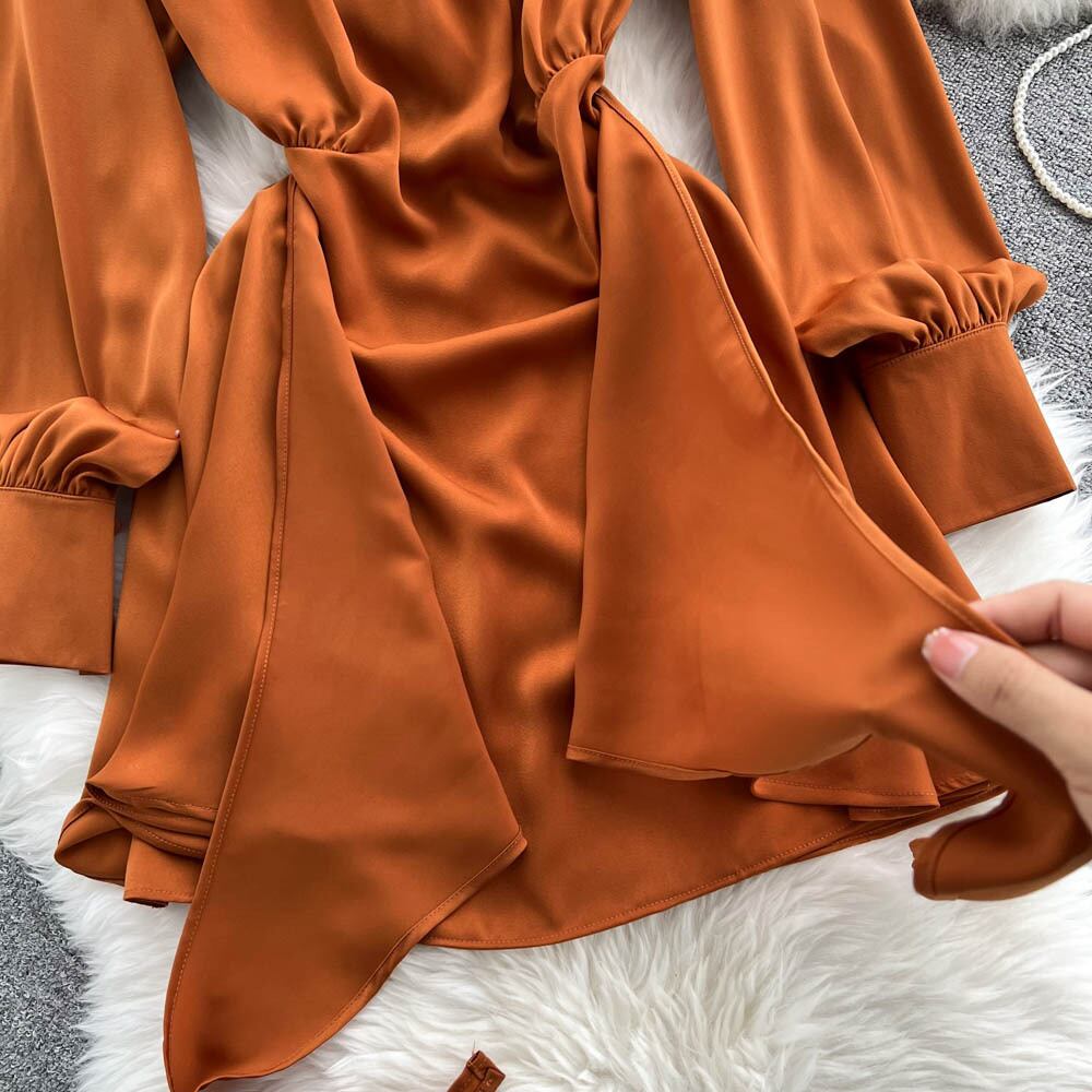 2021 autumn and winter new version pleated round neck slim lace-up design sense lady temperament waist French dress レース プリーツ オータム 秋物 ウィンター 冬物 Oネック スリム レースアップ lyxaj45888496478