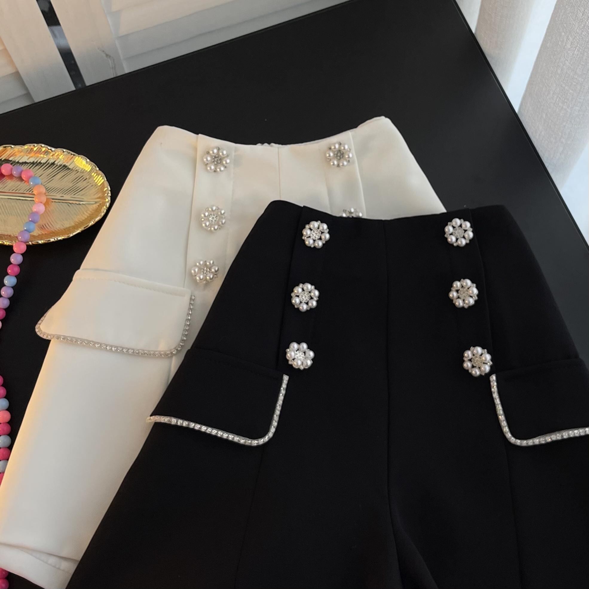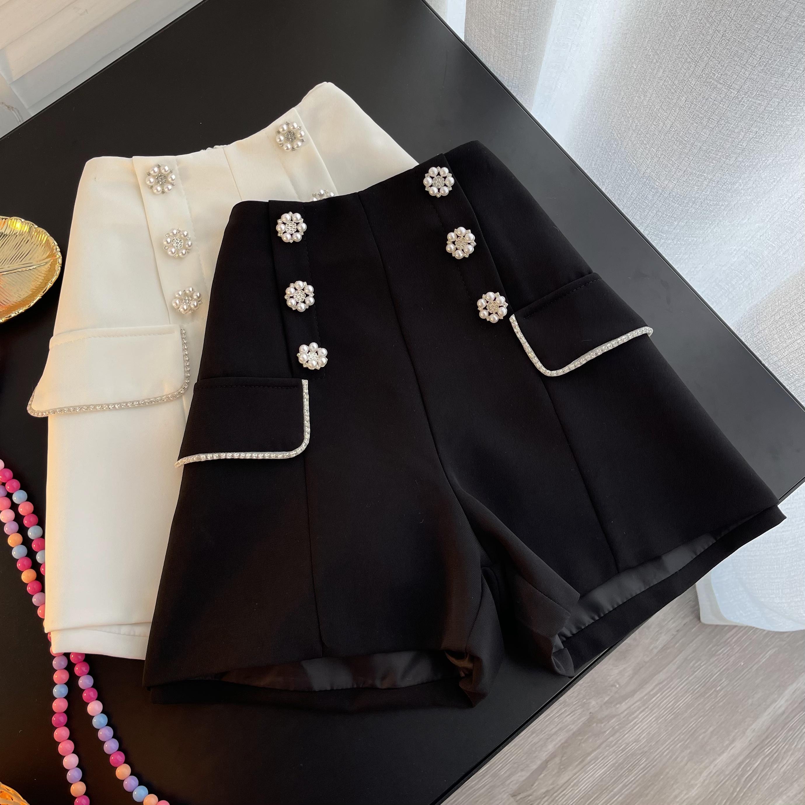 2022 autumn and winter all-match double drainage drill buckle high-waist woolen velvet wide-leg shorts slim A-line black casual pants ブラック カジュアル オータム 秋物 ウィンター 冬物 ショーツ ブルマー Aライン スリム lyxaj50520518094