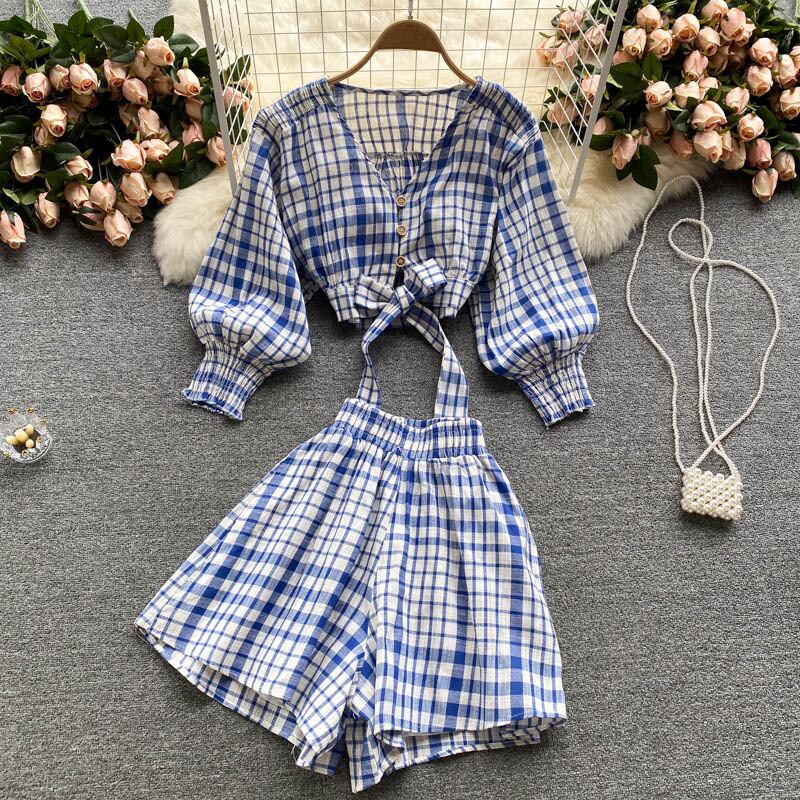 Autumn new holiday suit women's short bow shirt top high waist elastic wide leg shorts two-piece tide ハイウェスト ショート リボン エラスティック 伸縮 オータム 秋物 ショーツ ブルマー ワイドレッグ ワイドパンツ lyxaj55556177435