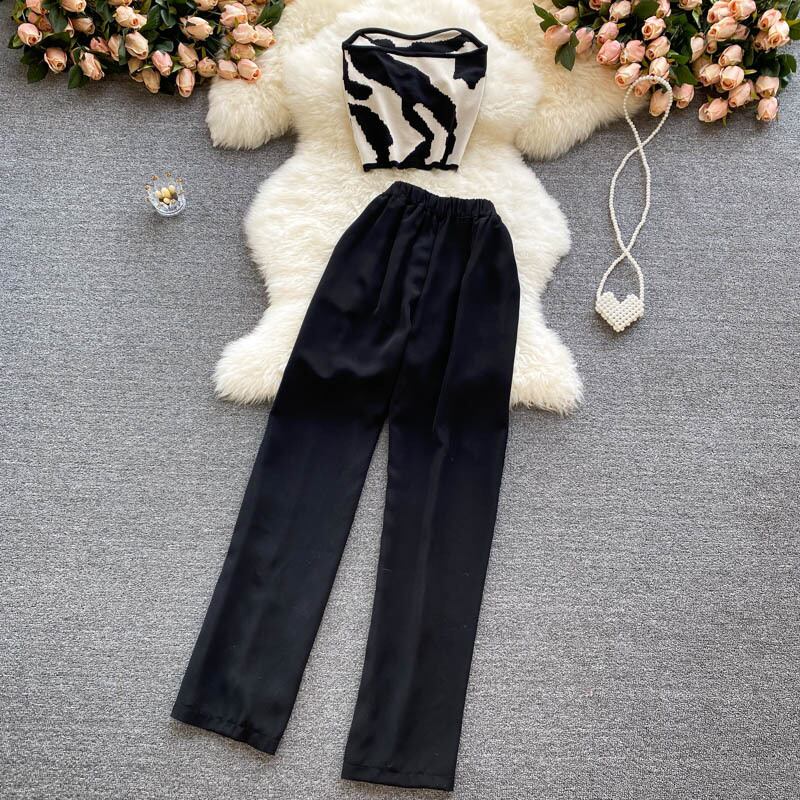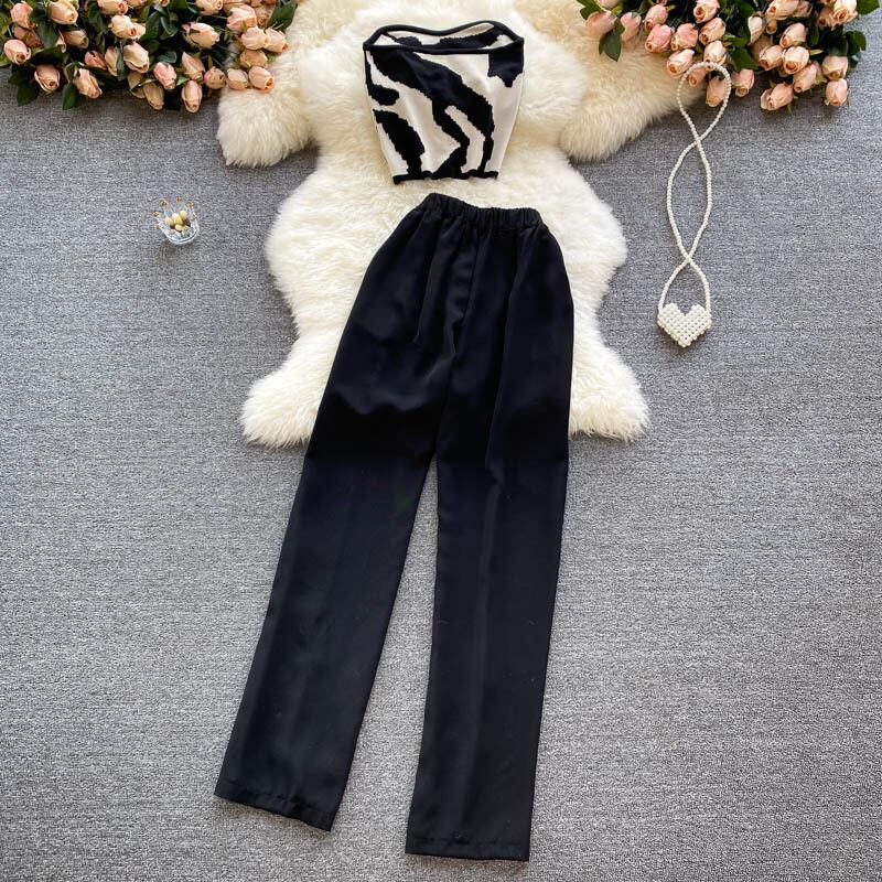 Chic Hong Kong style fashion suit women's summer new sexy tube top top all-match high-waisted wide-leg pants two-piece trendy サマー 夏物 lyxaj33908303775