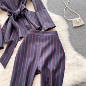 Professional suit women's high-end Western-style light mature lady temperament waist striped top high-waisted pencil pants two-piece set ストライプ lyxaj83400549990