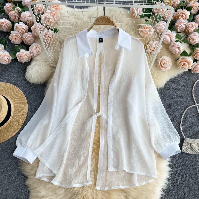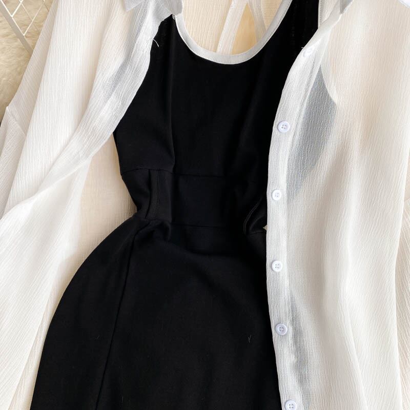 Net red fried street summer women's shirt design sense split sunscreen shirt all-match sexy halter dress two-piece レッド ストリート サマー 夏物 lyxaj4585123416