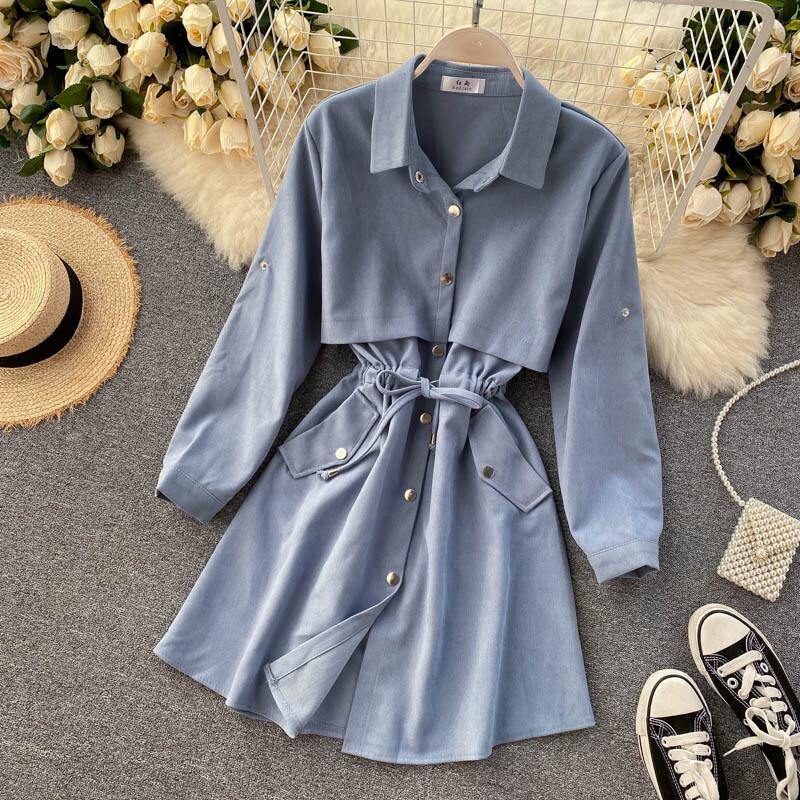 Small dress autumn 2020 new ladies temperament POLO neck tie waist short A-line skirt ショート オータム 秋物 スカート Aライン lyxaj52413034872