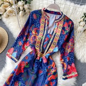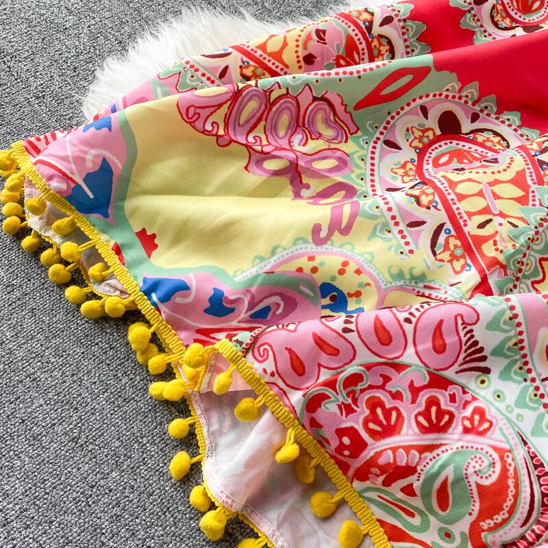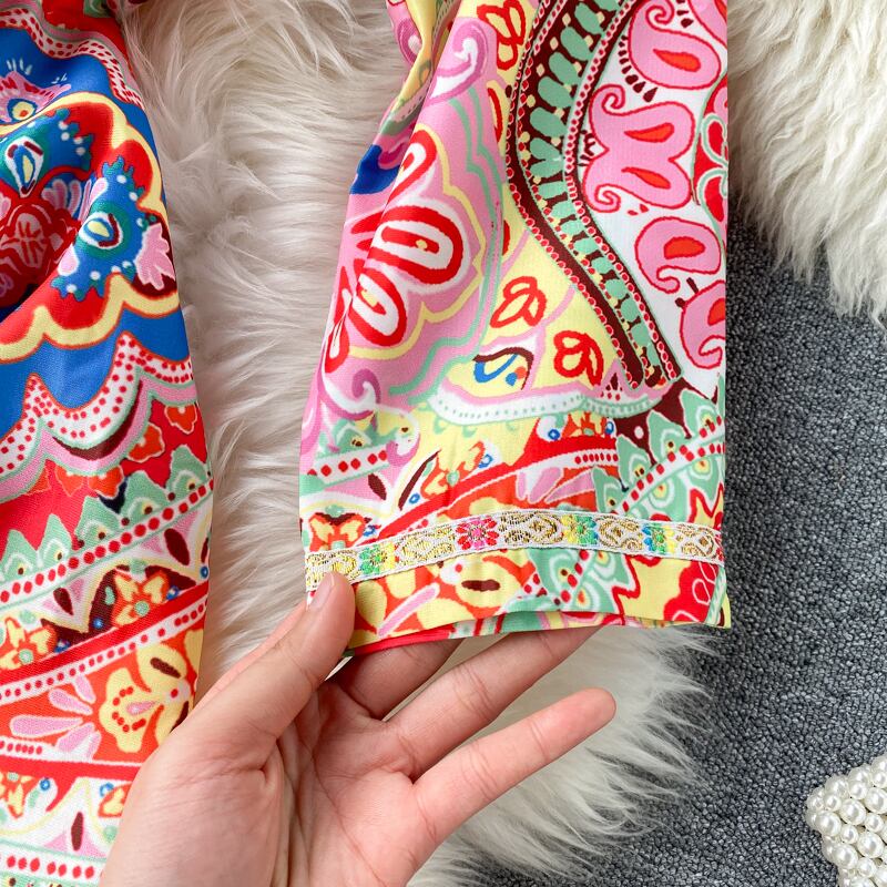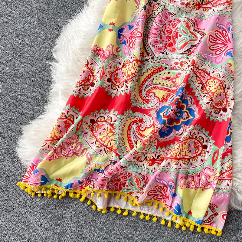 Thailand travel po holiday skirt ins retro ethnic print tel long skirt female temperament mid-sleeve dress ロング レトロ スカート lyxaj20480276914
