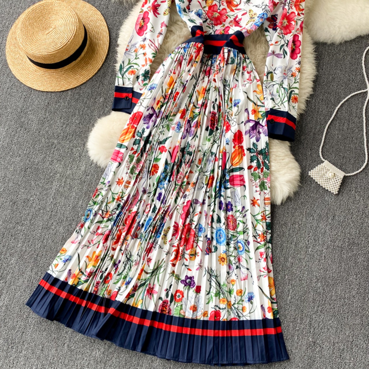 2020 new French dress women's autumn and winter design pleated printing ladies temperament dress long skirt ロング プリーツ オータム 秋物 ウィンター 冬物 スカート lyxaj43635253238