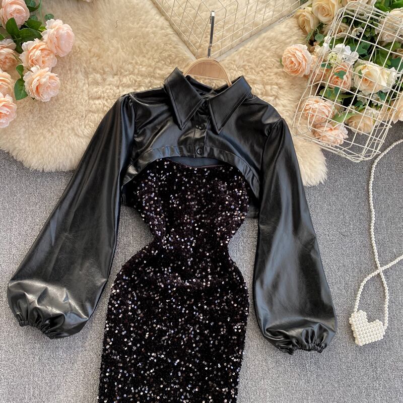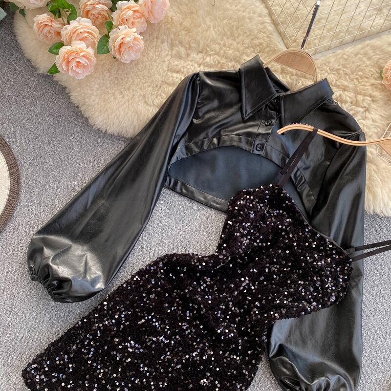 ins dark fashion suit 2020 new women's design sense short shawl + suspender dress small dress ショート lyxaj44726552560