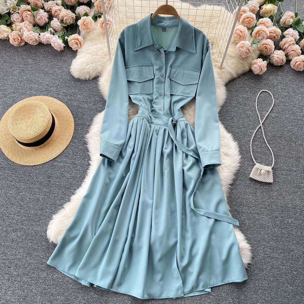 -end temperament women's super fairy shirt long skirt version of the slim slim tie long-sleeved large swing dress female ロング スカート スリム lyxaj20912550907