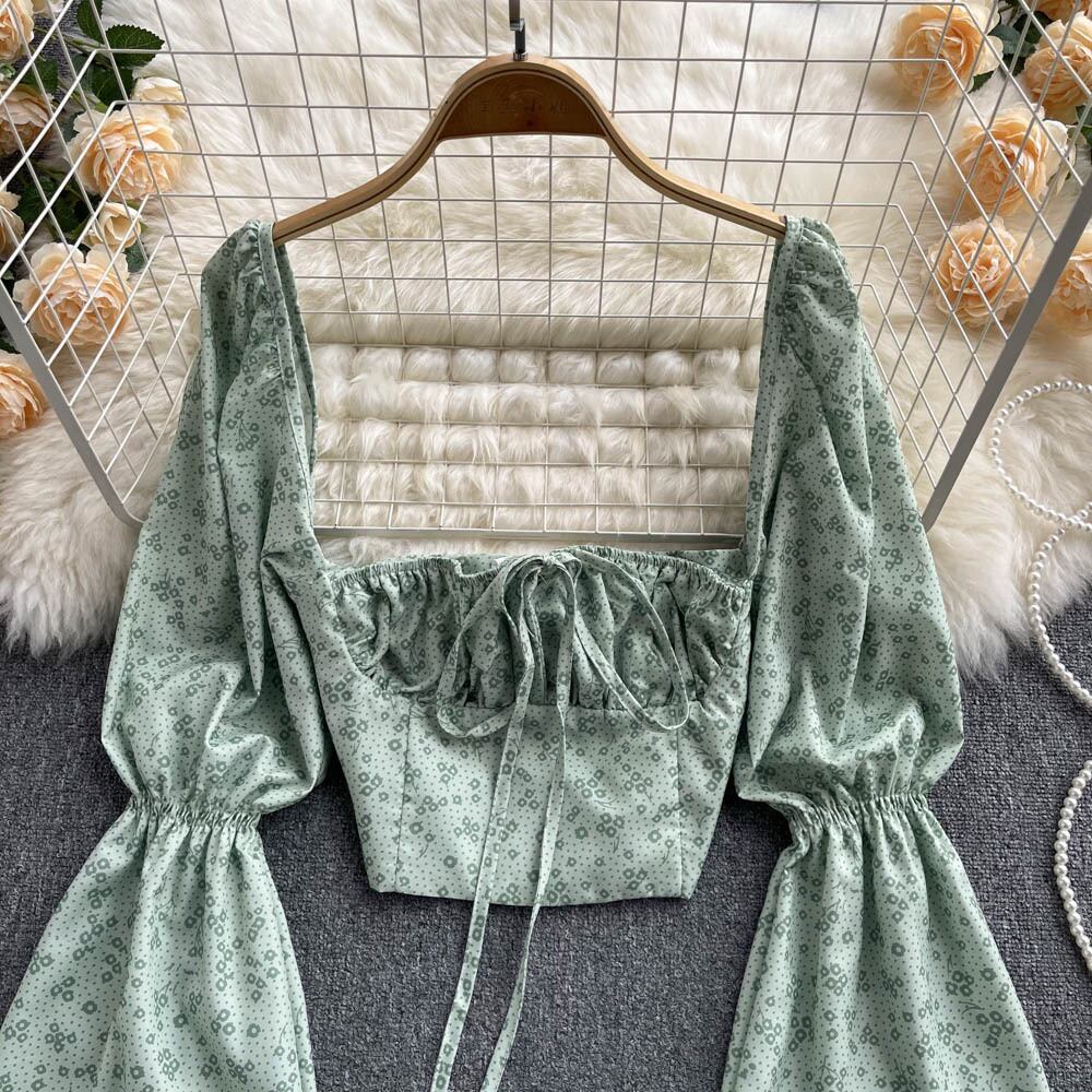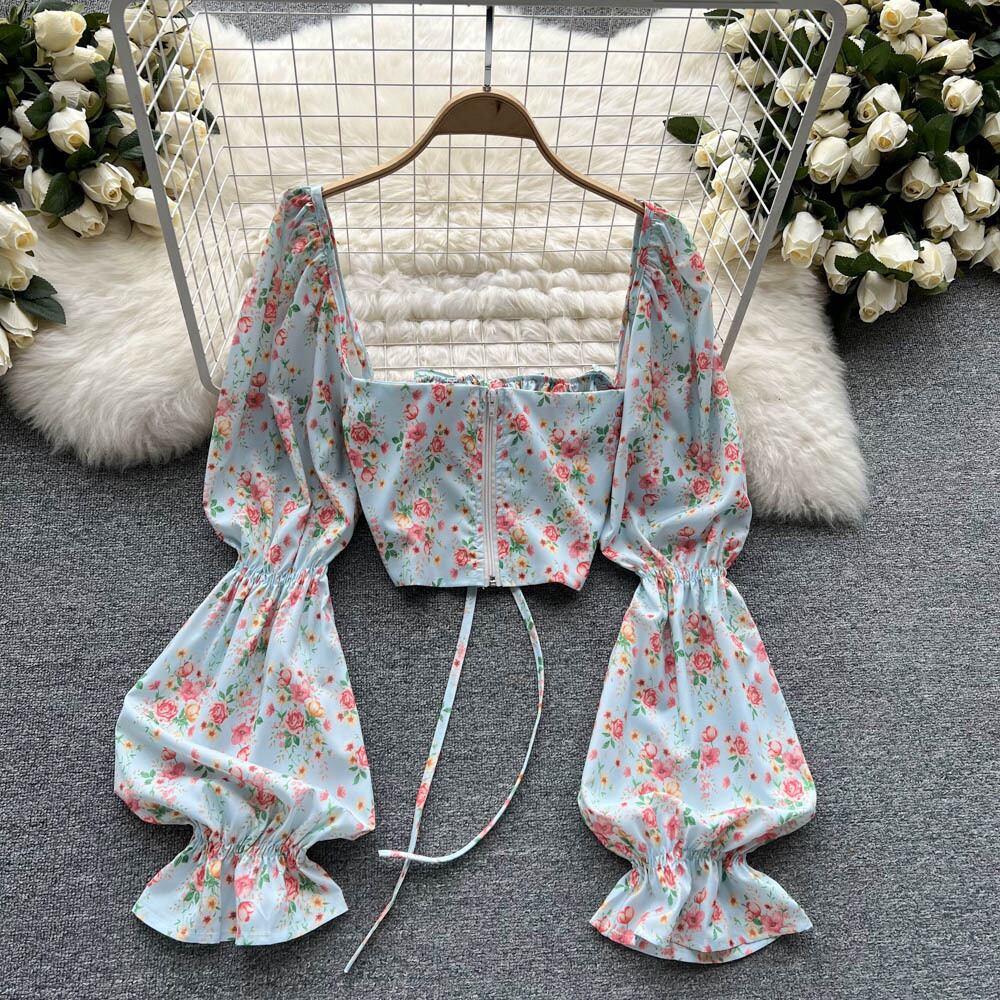 2021 new small shirts European and American ins tops women's design sense niche puff sleeves sexy low-neck floral small shirt tide シャツ 花柄 ヨーロピアン lyxaj54712458051