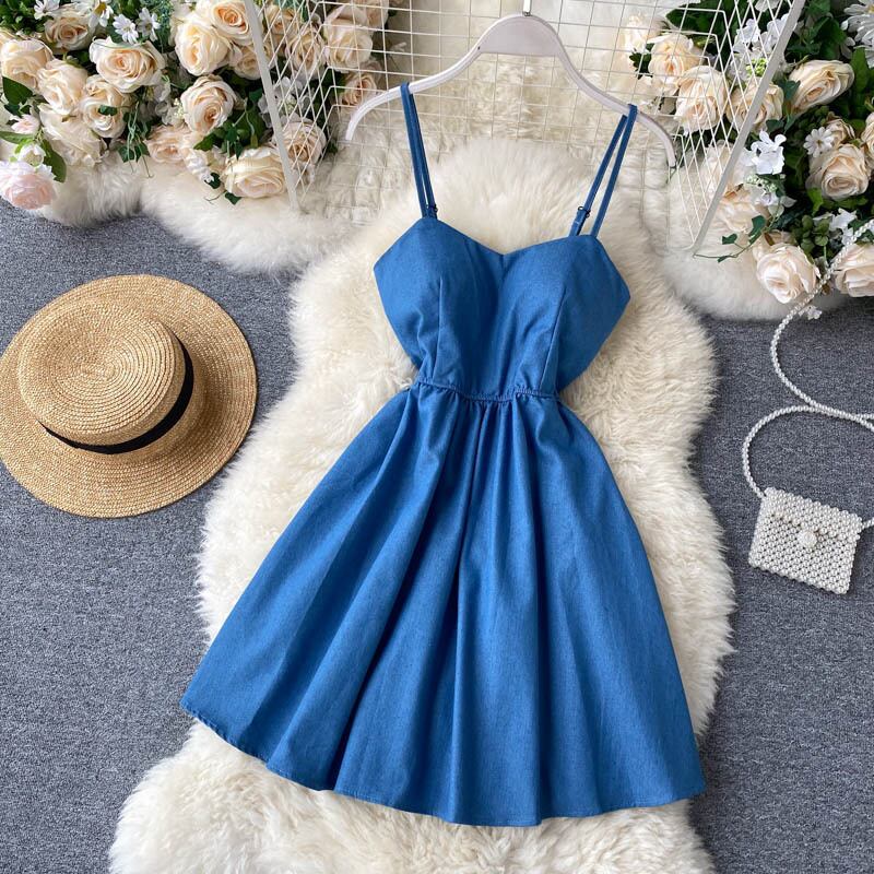 Holiday dress women's summer dress 2020 new scheming hollow backless suspenders high waist slim short denim skirt ハイウェスト ショート サマー 夏物 スカート スリム lyxaj16097531161