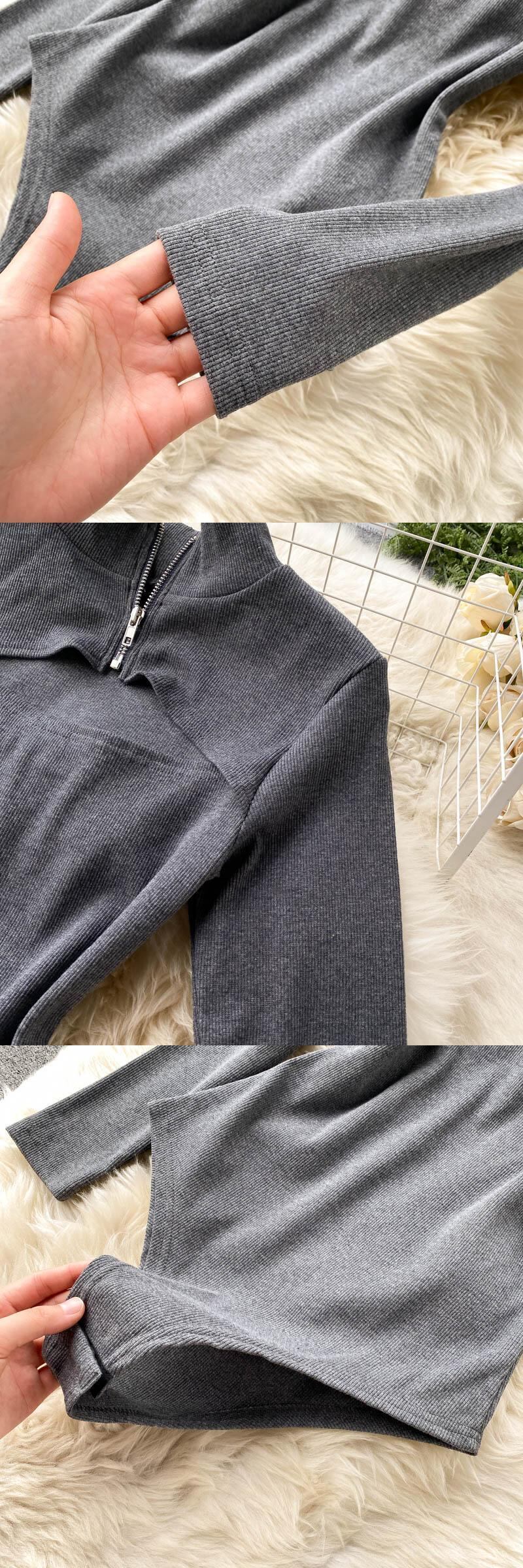 European and American ins design sense anti-glare jumpsuit zipper round neck long-sleeved scheming sexy hollow feminine top ロング Oネック ヨーロピアン lyxaj96096154099