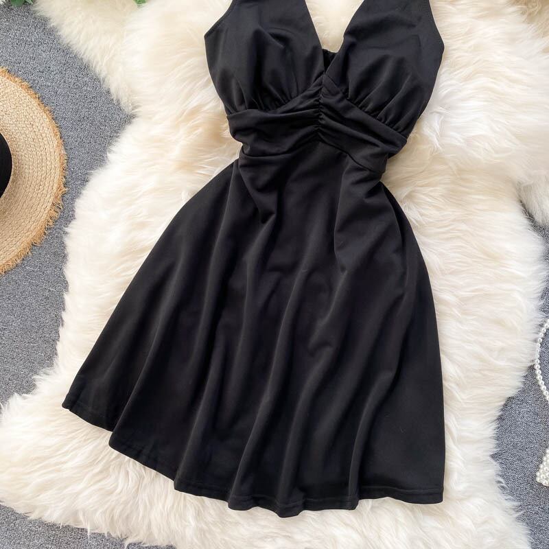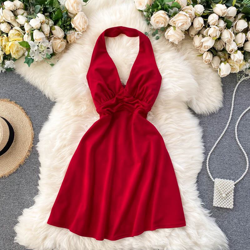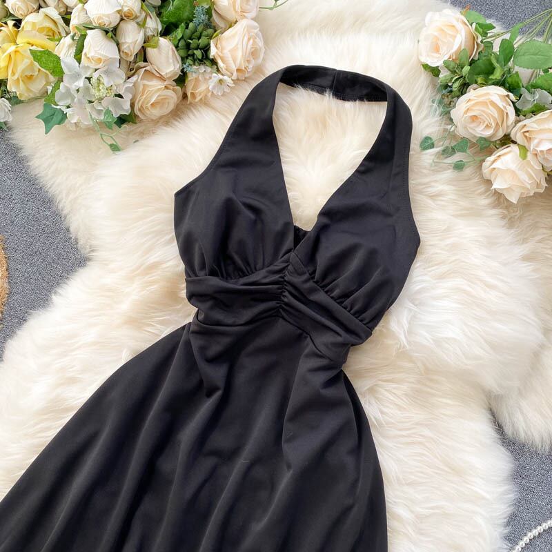 Celebrity temperament dress female 2020 new scheming pleated halter neck halter sexy short small dress dress skirt ショート プリーツ スカート lyxaj75887998790