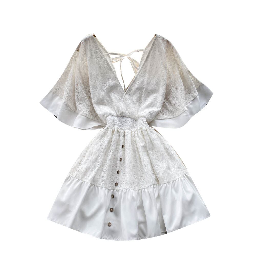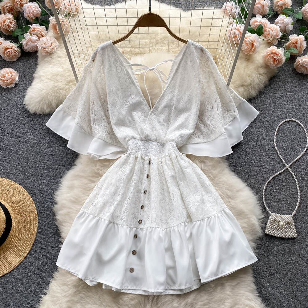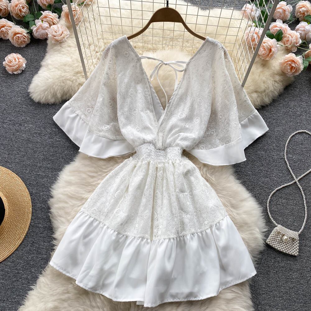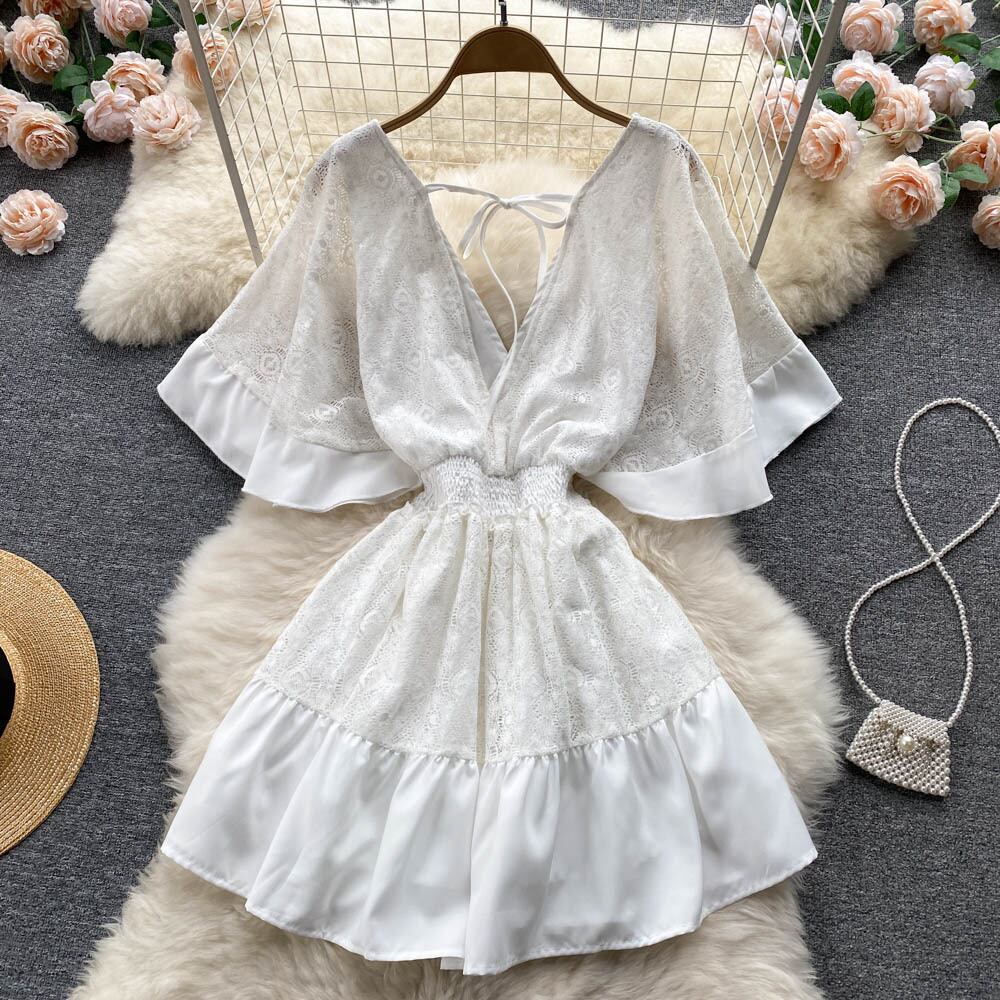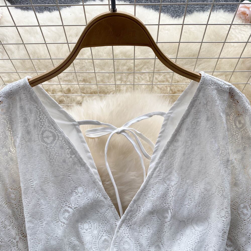 2022 new careful machine sexy backless Hong Kong style dress temperament high waist long sleeve V-neck fashion fairy skirt ハイウェスト ロング 長袖 スカート Vネック lyxaj18222898967