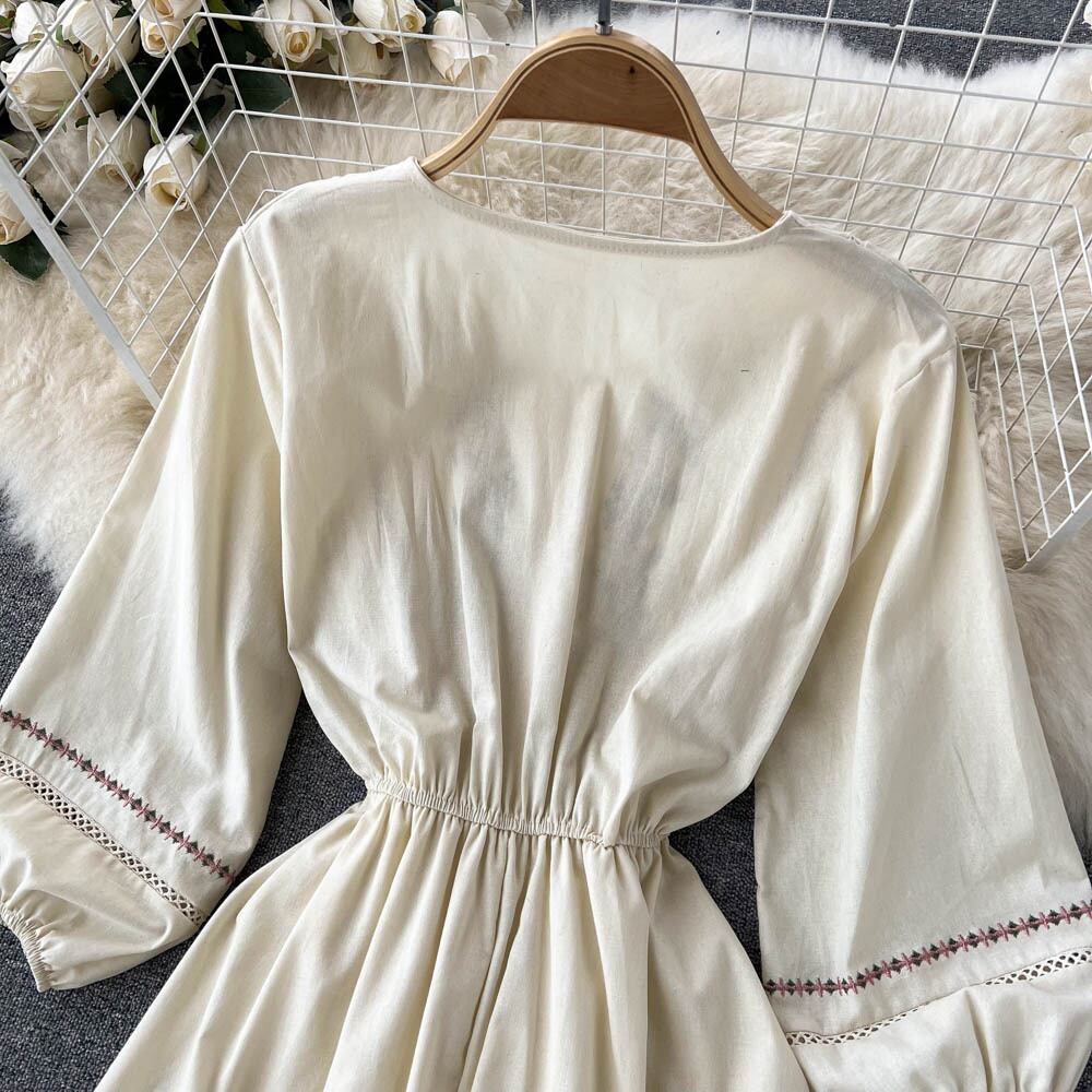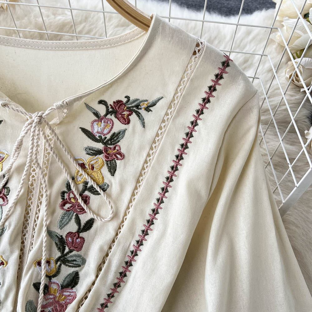 Yunnan ethnic style retro embroidered dress women's mid-length waist slim lantern sleeves literary gentle first love dress レッド ランタンスリーブ レトロ 刺繍 スリム lyxaj53099268470