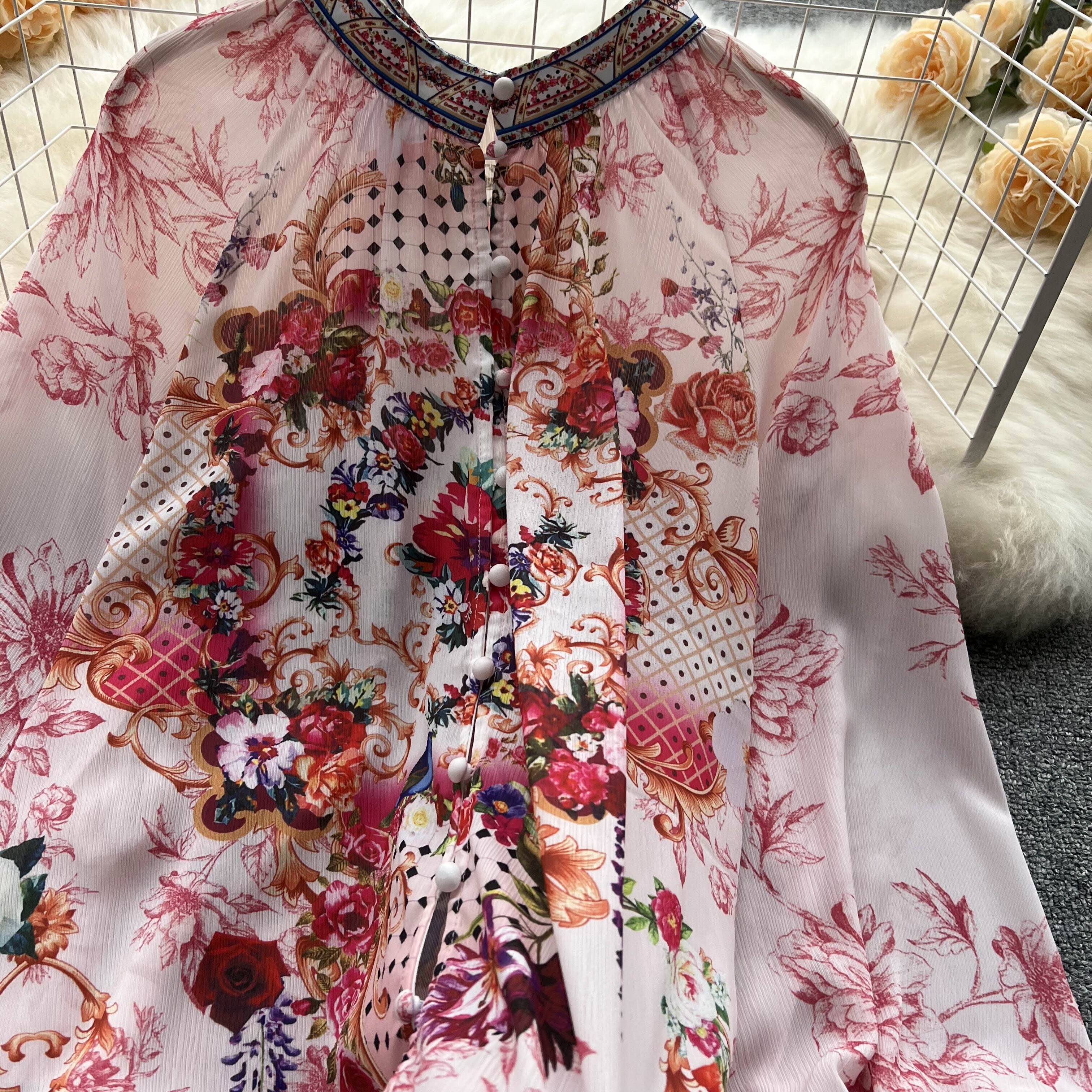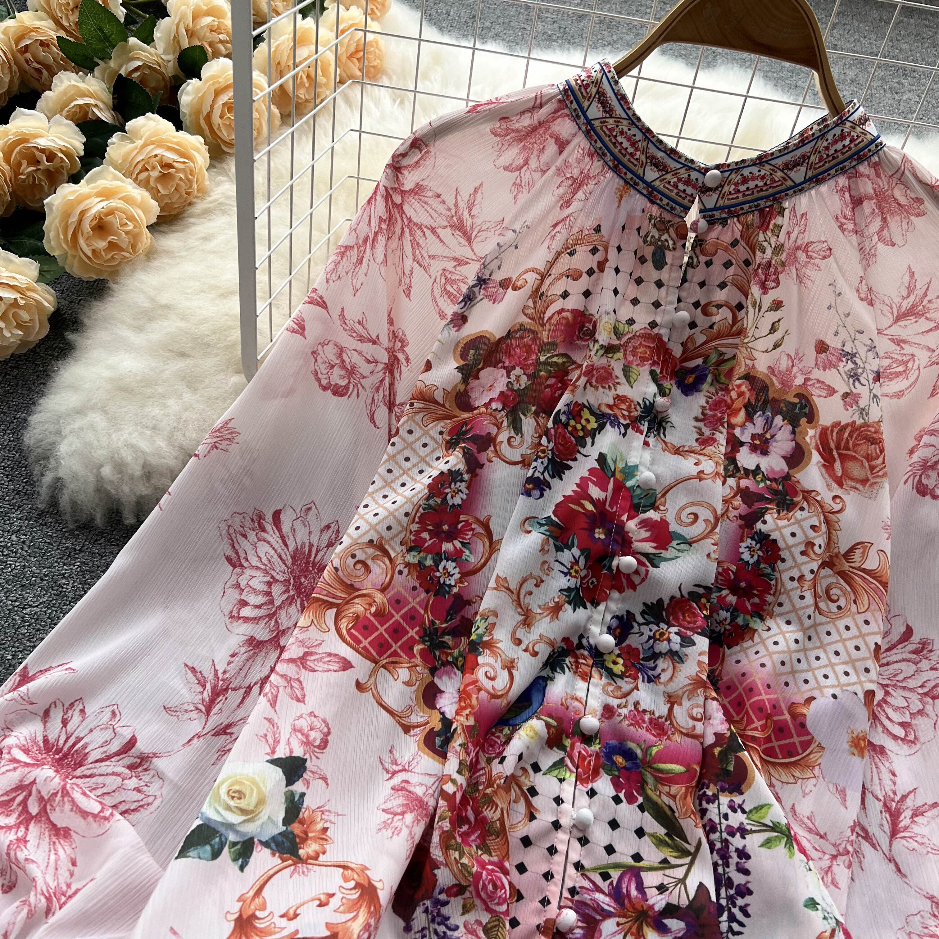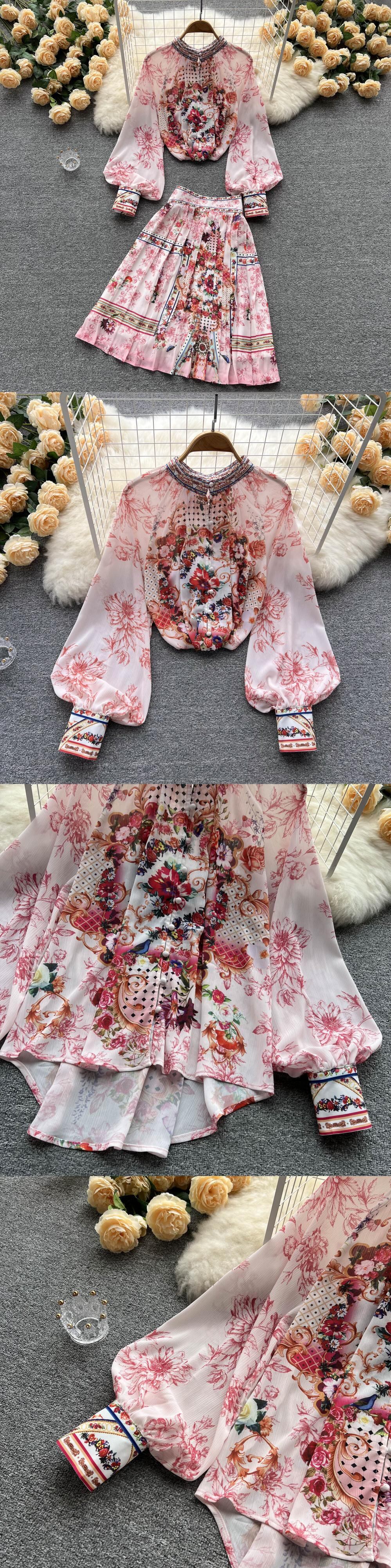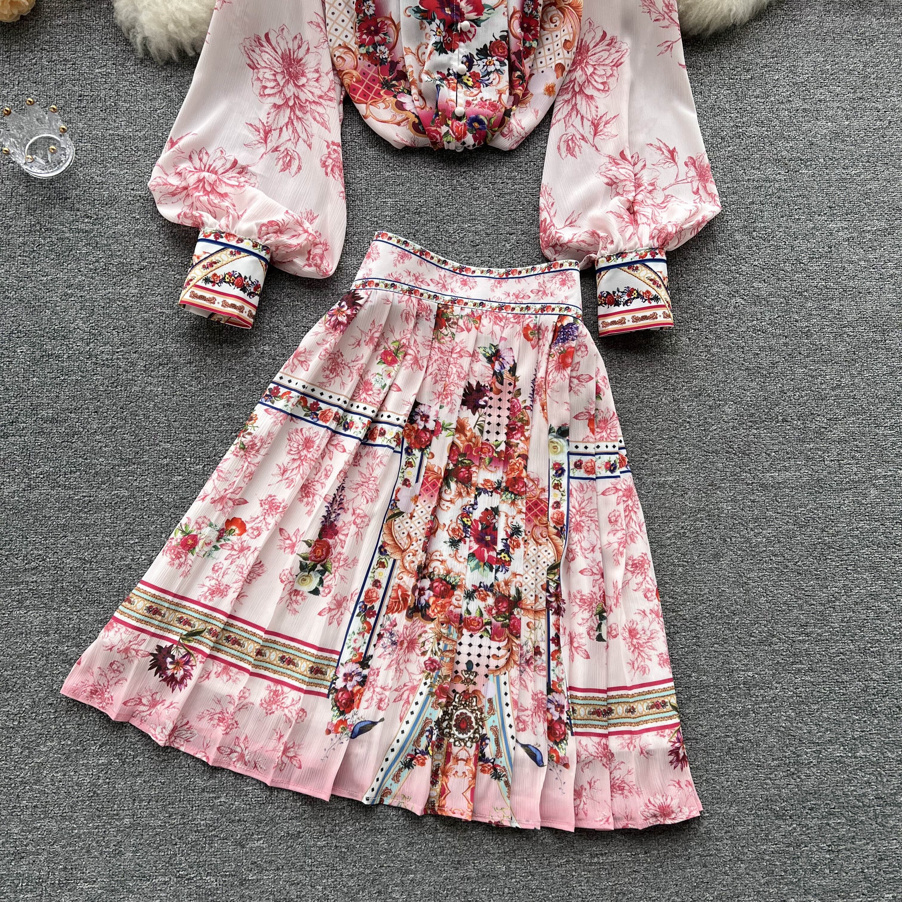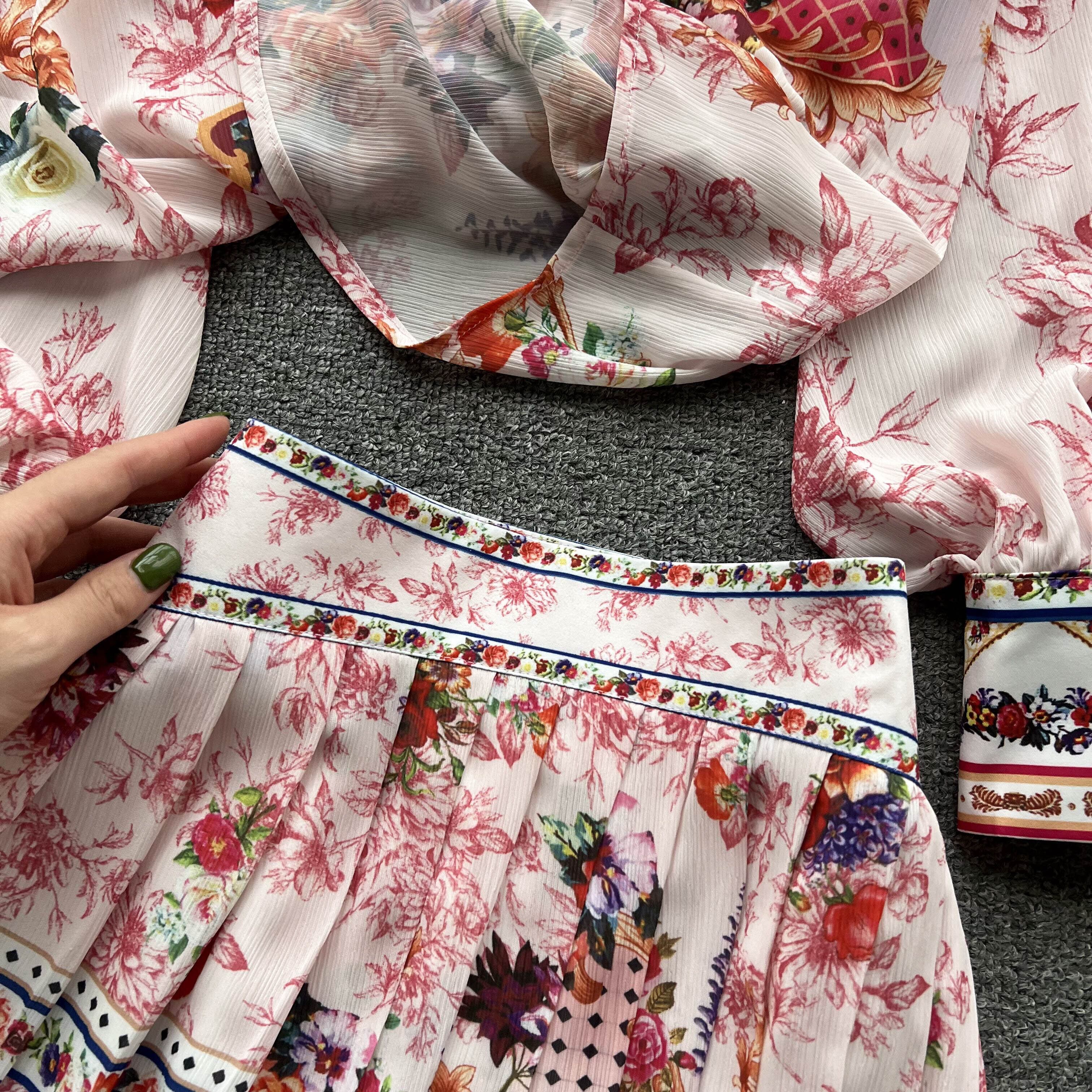 National court style retro print suit spring new niche long-sleeved top pleated short skirt Western style two-piece suit ショート ロング レトロ プリーツ スプリング 春物 スカート lyxaj24627942506