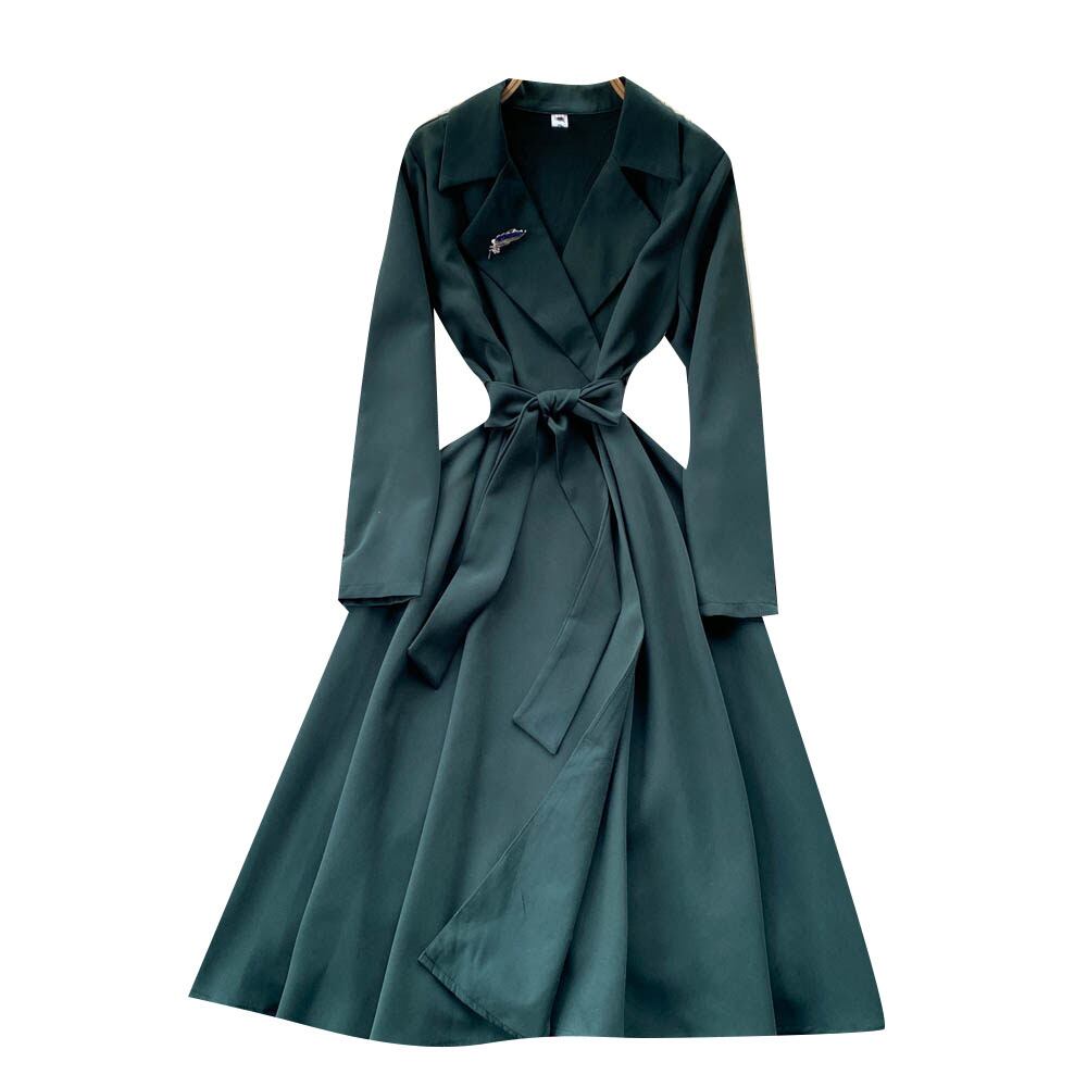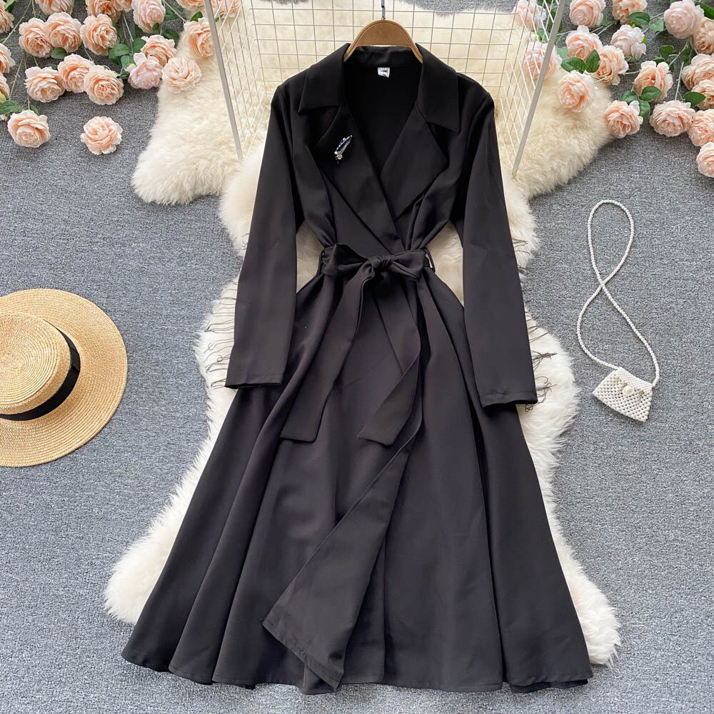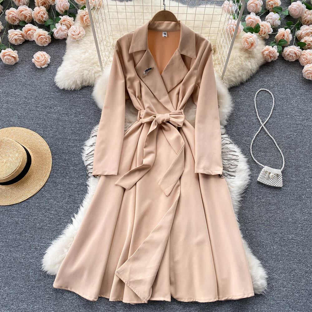 Yujie's light and familiar temperament suit collar windbreaker dress high-end tie-waist slimming over-knee long skirt ロング スカート lyxaj53328759609