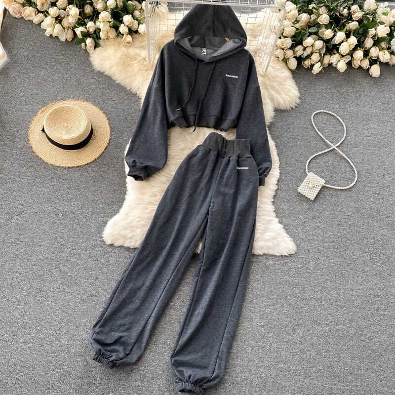 Loose sportswear casual suit female autumn ins fashion hooded pullover sweater elastic leggings two-piece set カジュアル エラスティック 伸縮 オータム 秋物 lyxaj42831191024