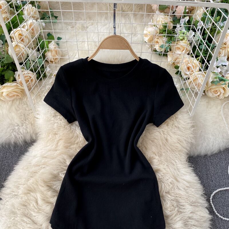 European and American ins fashion bloggers private clothes with one-pieces women's simple solid color all-match short-sleeved T-shirts women's tops trendy シャツ Tシャツ ソリッドカラー ヨーロピアン lyxaj79732986478