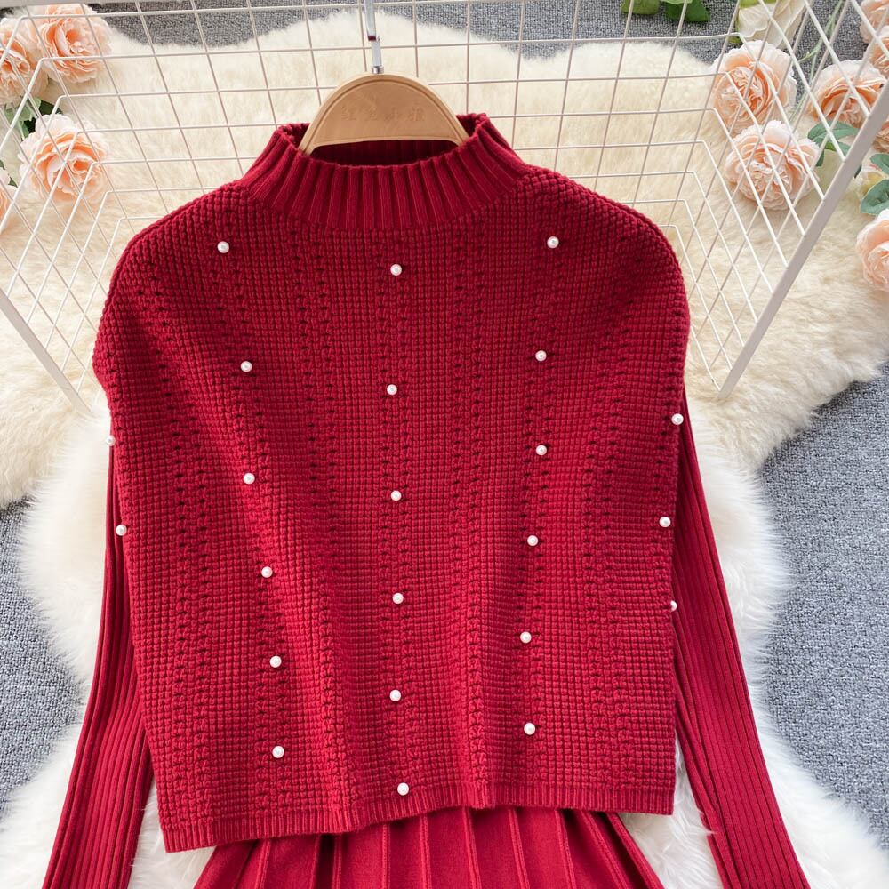 temperament knitted suit skirt women's autumn and winter new sweater dress beaded vest Western style slimming two-piece suit オータム 秋物 ウィンター 冬物 スカート lyxaj61149854774