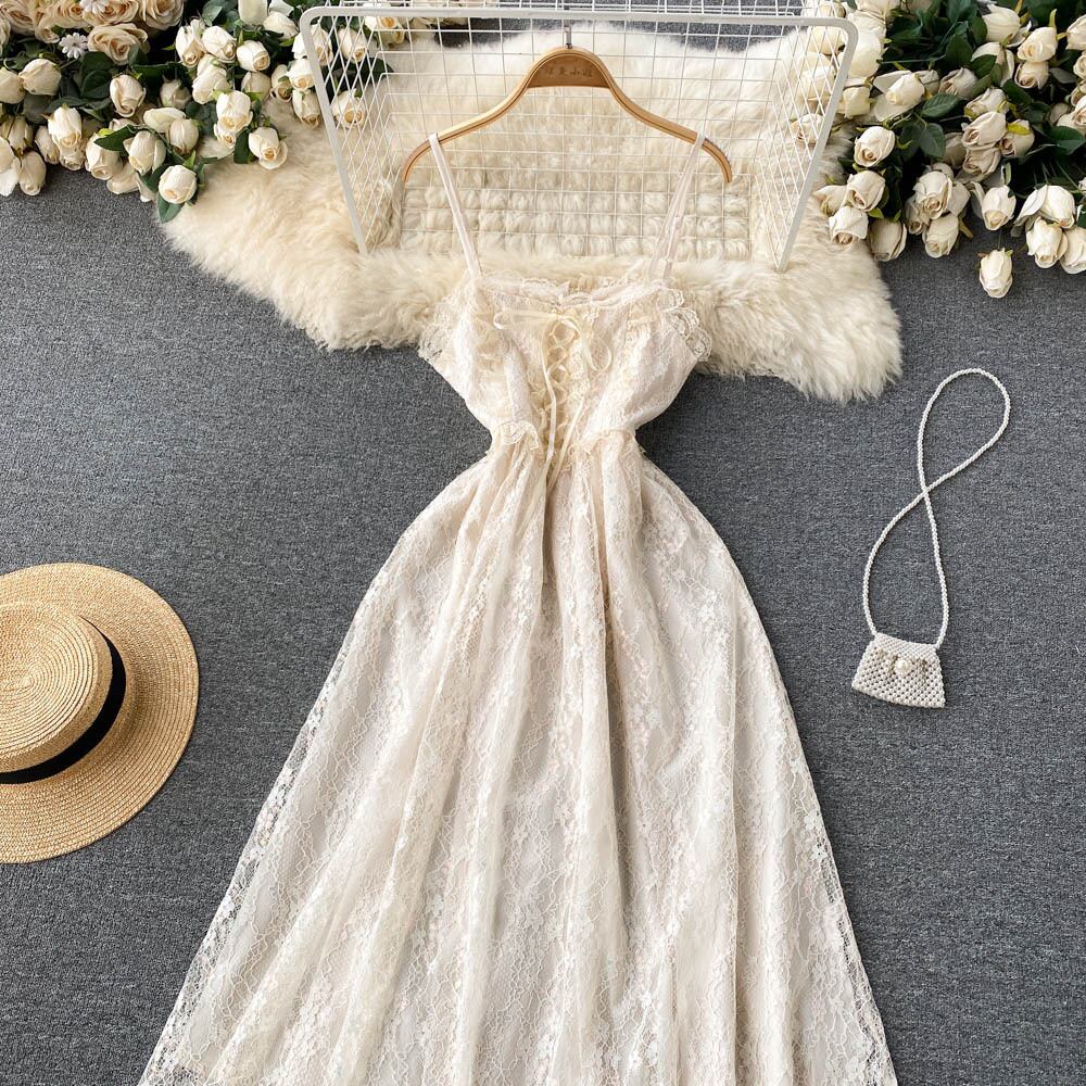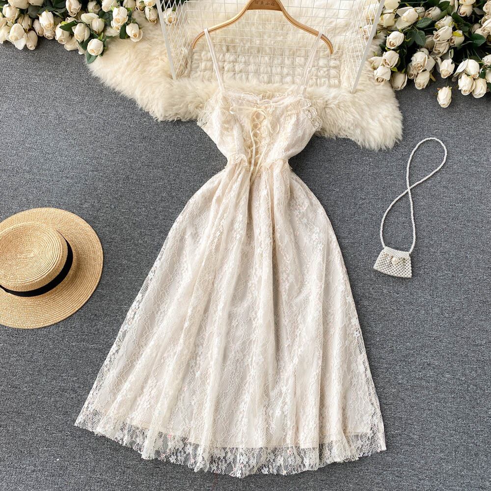 chic retro court style slim sexy lace lace suspender dress female first love knee-length skirt レトロ レース スカート スリム lyxaj28444628941