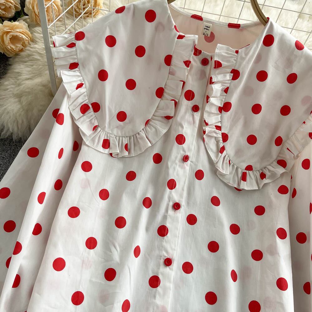 Polka-dot long-sleeved doll-collar shirt women's 2022 spring and autumn new version loose and thin Western-style retro Hong Kong-flavored shirt ロング レッド レトロ スプリング 春物 オータム 秋物 lyxaj50995058232