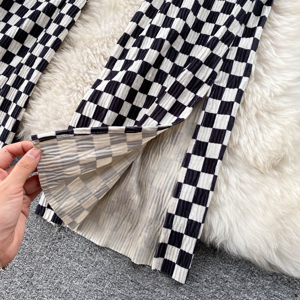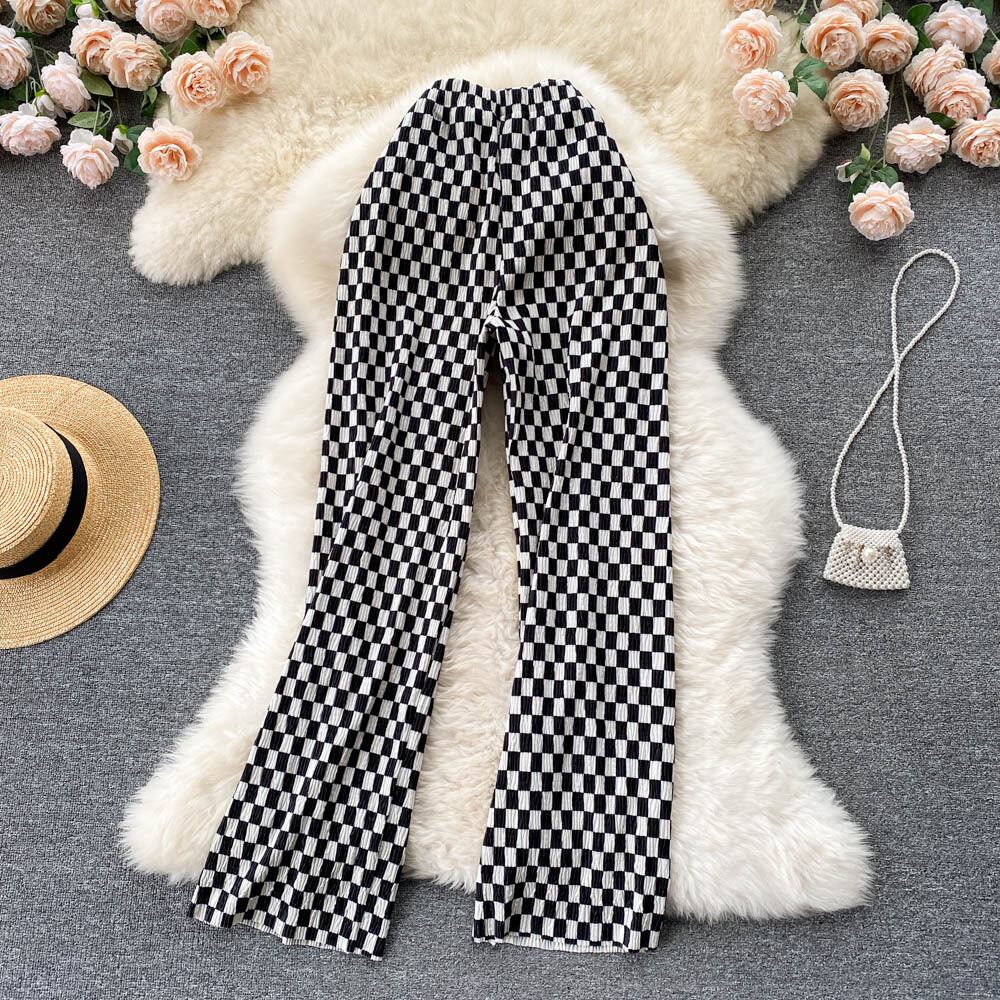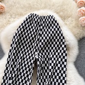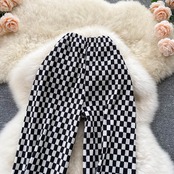 Checkerboard pants women's new 2021 popular black and white grid fashionable all-match high waist thin wide leg pants casual long pants ハイウェスト ロング ホワイト ブラック カジュアル ワイドレッグ ワイドパンツ lyxaj37224656684