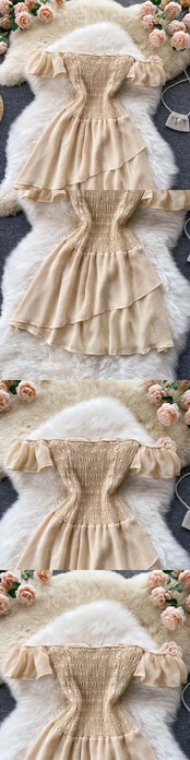 chic Hong Kong style sexy tube top dress niche popular design holiday style sweet ruffle short skirt trendy ショート 大人ガーリー スウィート キュート カジュアル スカート lyxaj31693480020