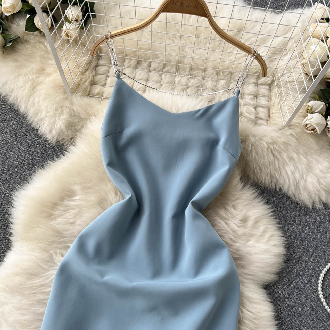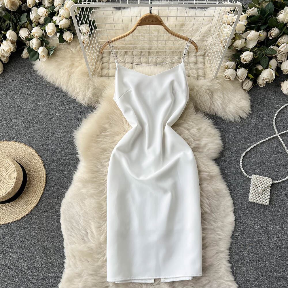 2022 summer new temperament V-neck satin slim fit and slim suspender dress inside and outside wearing pure desire skirt women サマー 夏物 スカート Vネック サテン スリム ピュア lyxaj99649258588