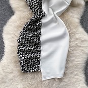 Niche design sense contrast color stitching chic suspender dress female slim slim sexy package hip short skirt small ショート スカート スリム ステッチ lyxaj75874455719