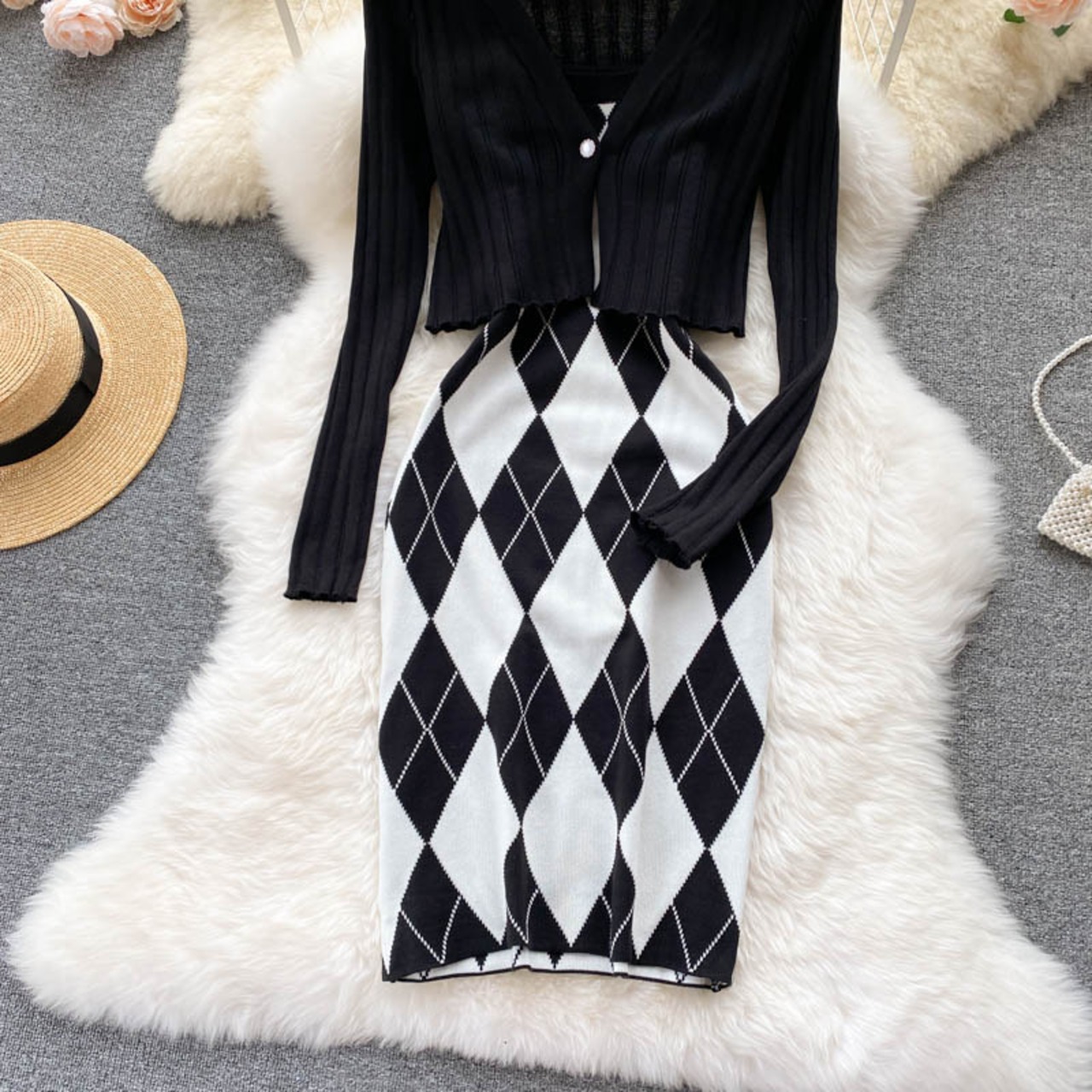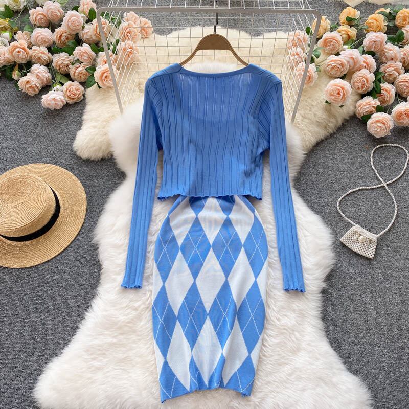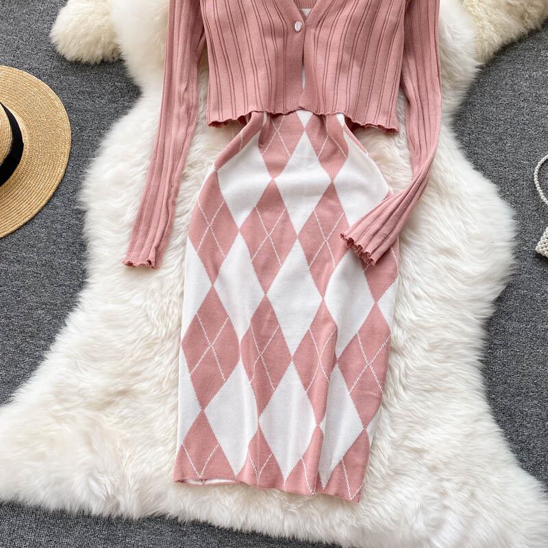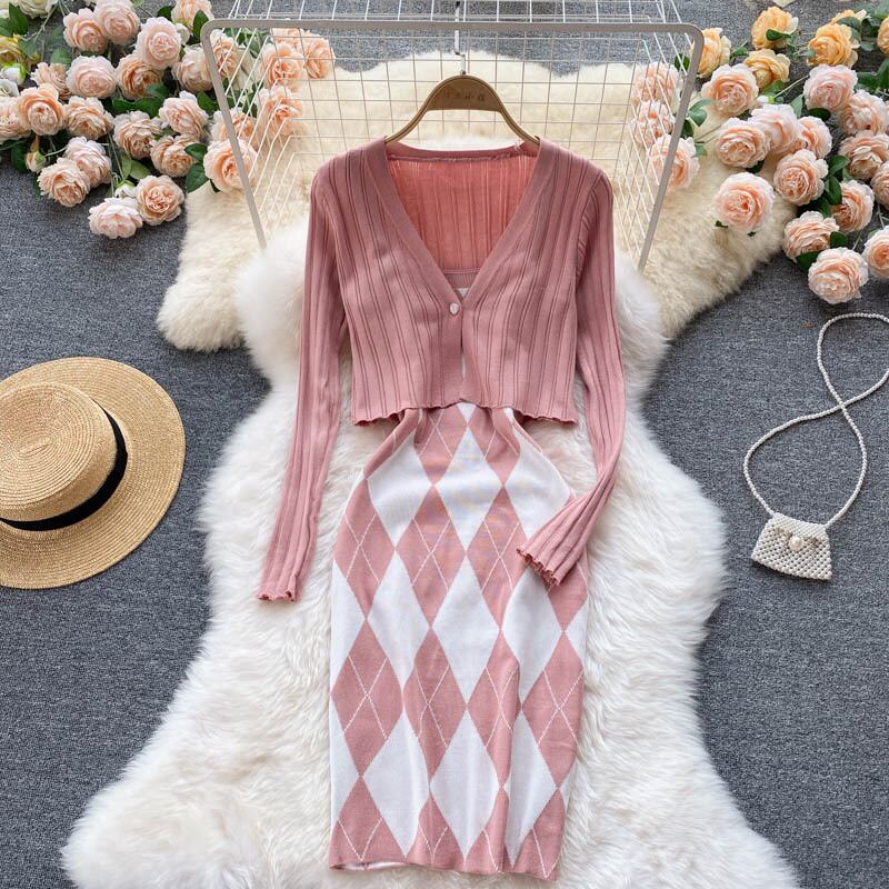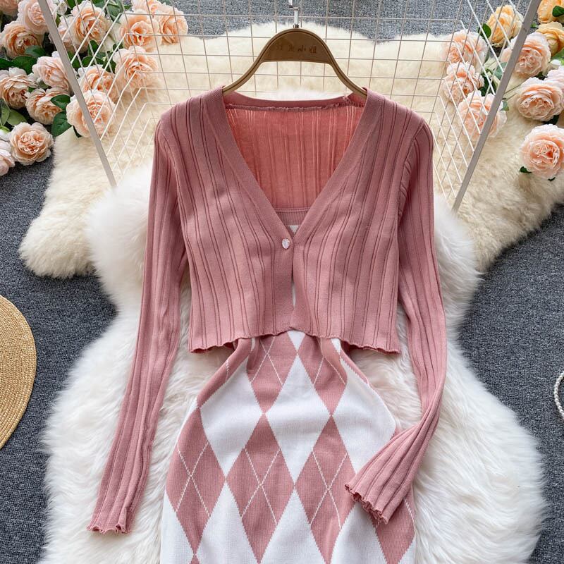 2021 early autumn new dress suit women's long-sleeved knitted cardigan coat bar all-match sexy suspender skirt trend ロング カーディガン オータム 秋物 スカート lyxaj71746013905