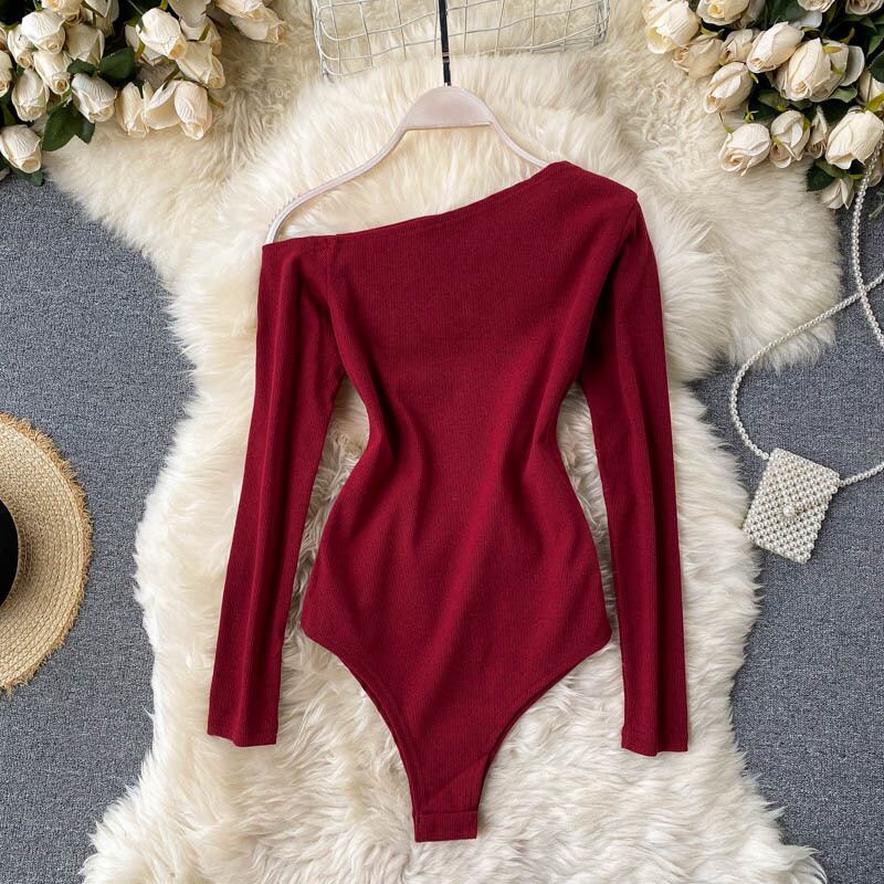 European and American ins design sense oblique collar off-shoulder long-sleeved T-shirt women's self-cultivation all-match one-piece autumn new women's bottoming shirt ロング オータム 秋物 オフショルダー Tシャツ ヨーロピアン lyxaj88953668814