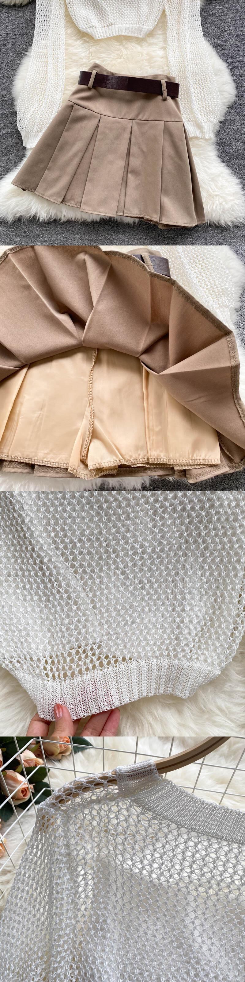 ins net red fried street suit female summer sexy suspender top + long-sleeved knitted blouse all-match age-reducing skirt ロング レッド ブラウス ストリート サマー 夏物 スカート lyxaj95358217929