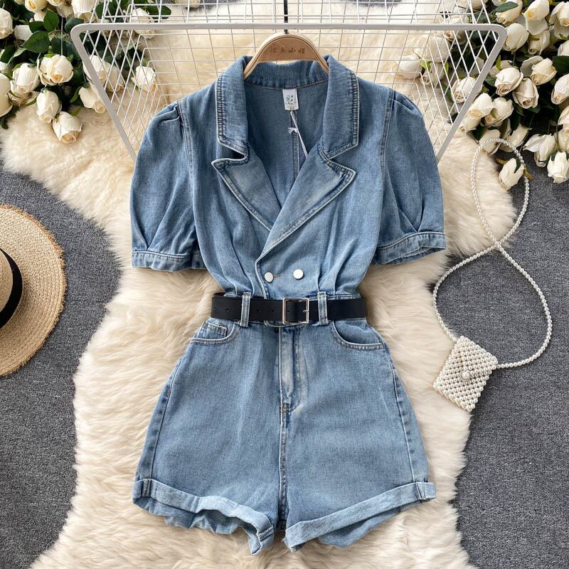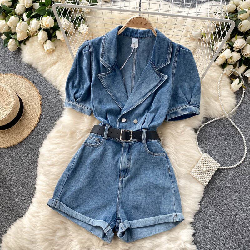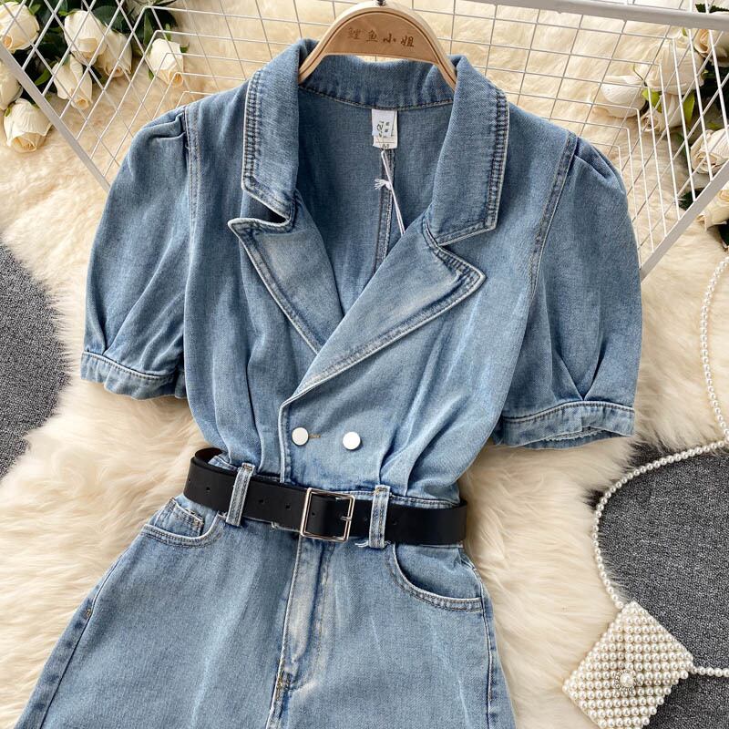 Wide-legged jumpsuit women's summer dress 2021 new chic Hong Kong style retro double-breasted slim short jeans trend ショート レトロ サマー 夏物 スリム lyxaj26207158384