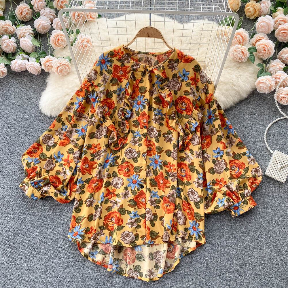 2021 autumn new French retro floral temperament age-reducing all-match long-sleeved shirt casual fashion loose top ロング レトロ カジュアル オータム 秋物 花柄 lyxaj14333674370