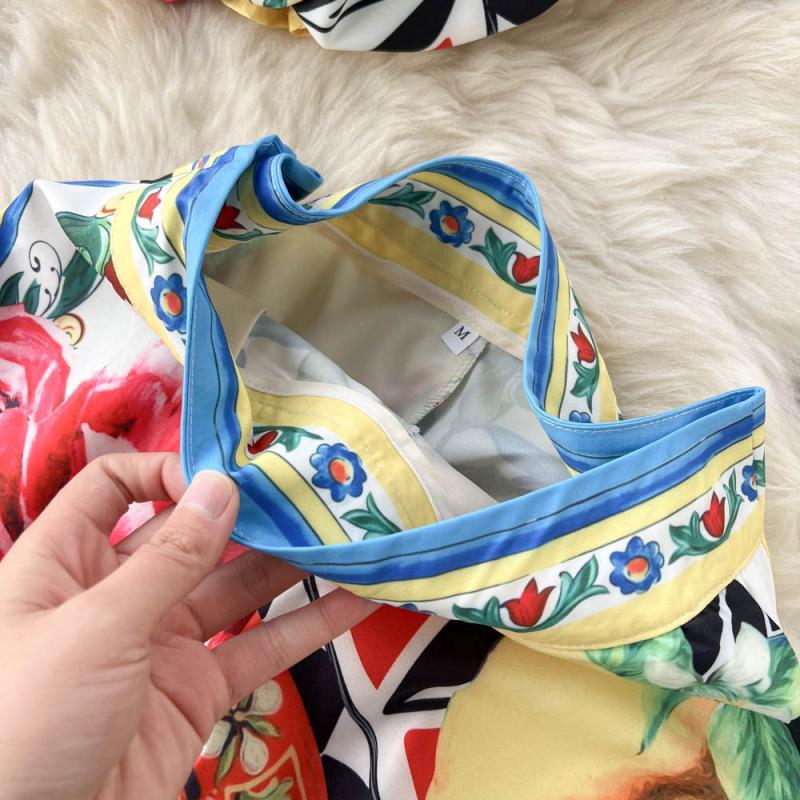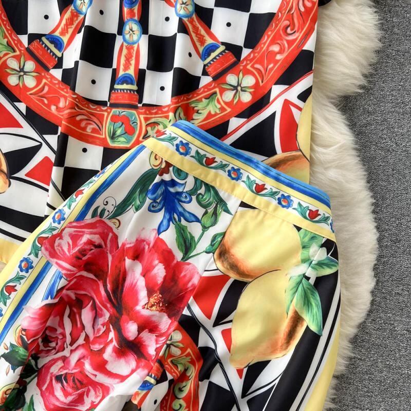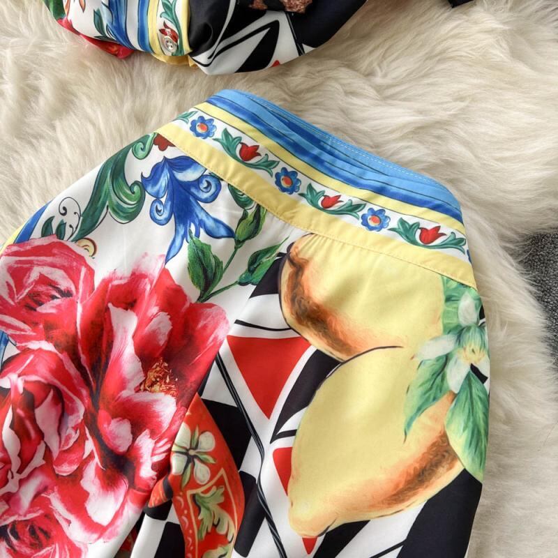 European and American fashion age-reducing suits women's loose bat-sleeved printed tops are thin seven-point wide-leg pants two-piece suit プリント ヨーロピアン lyxaj90284235041